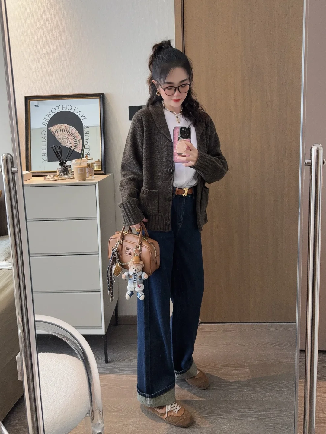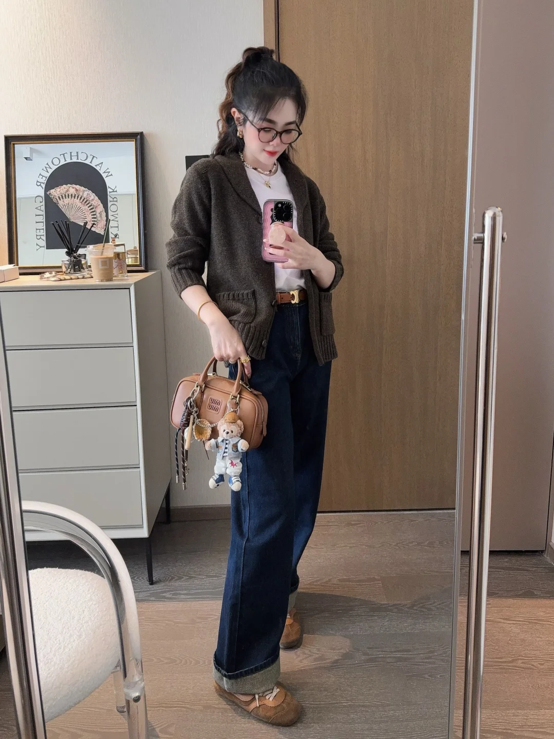 ootd每日穿搭 基础款穿搭 咖色系穿搭 早秋毛衣 软糯毛衣 淡人穿搭 穿搭的尽头是去繁就简 毛衣推荐 毛衣开衫 秋冬氛围感穿搭