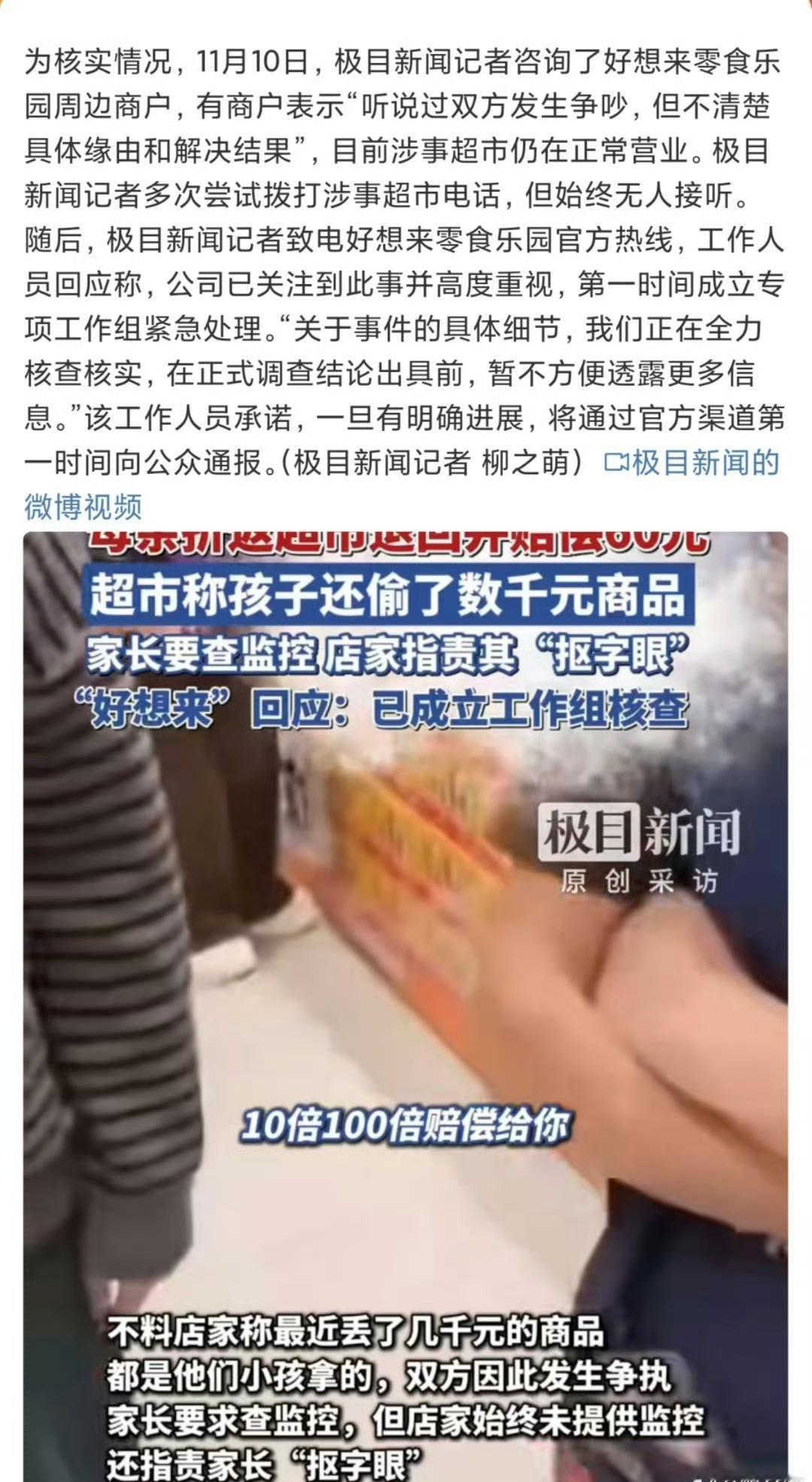 2块泡泡糖,被索赔几千元? 近日,有江苏网友发视频称,一个三岁的孩子拿了好想来零食店的 2 块泡泡糖(价值约 6 元),被孩子母亲发现后,主动送回并道歉,店家要求按上一位顾客的支付金额赔付,孩子母亲也同意了。谁知商家竟然声称他们店最近丢了几千元的东西,都是他们家的小孩拿的,要求赔偿,孩子父母亲忍无可忍,要求查看监控,如果确有此事,可以百倍赔付,但是店家始终未能提供监控视频,最终导致双方矛盾不断升级! 店家是怎么敢的,一个三岁的孩子,尚不如货架高,如何拿你几千块的零食呢,那得拿多少,拿的时候都看不到?现在来算账。我倒觉得看起来更像是逮住羊毛使劲薅,拿人家来平账是吧。 商家这波操作,可以说基本上给自己的铺子宣布了死刑,以后谁还敢去买东西,那不得被薅秃!