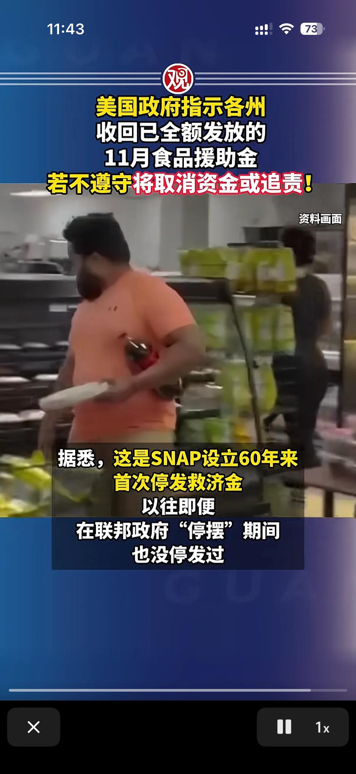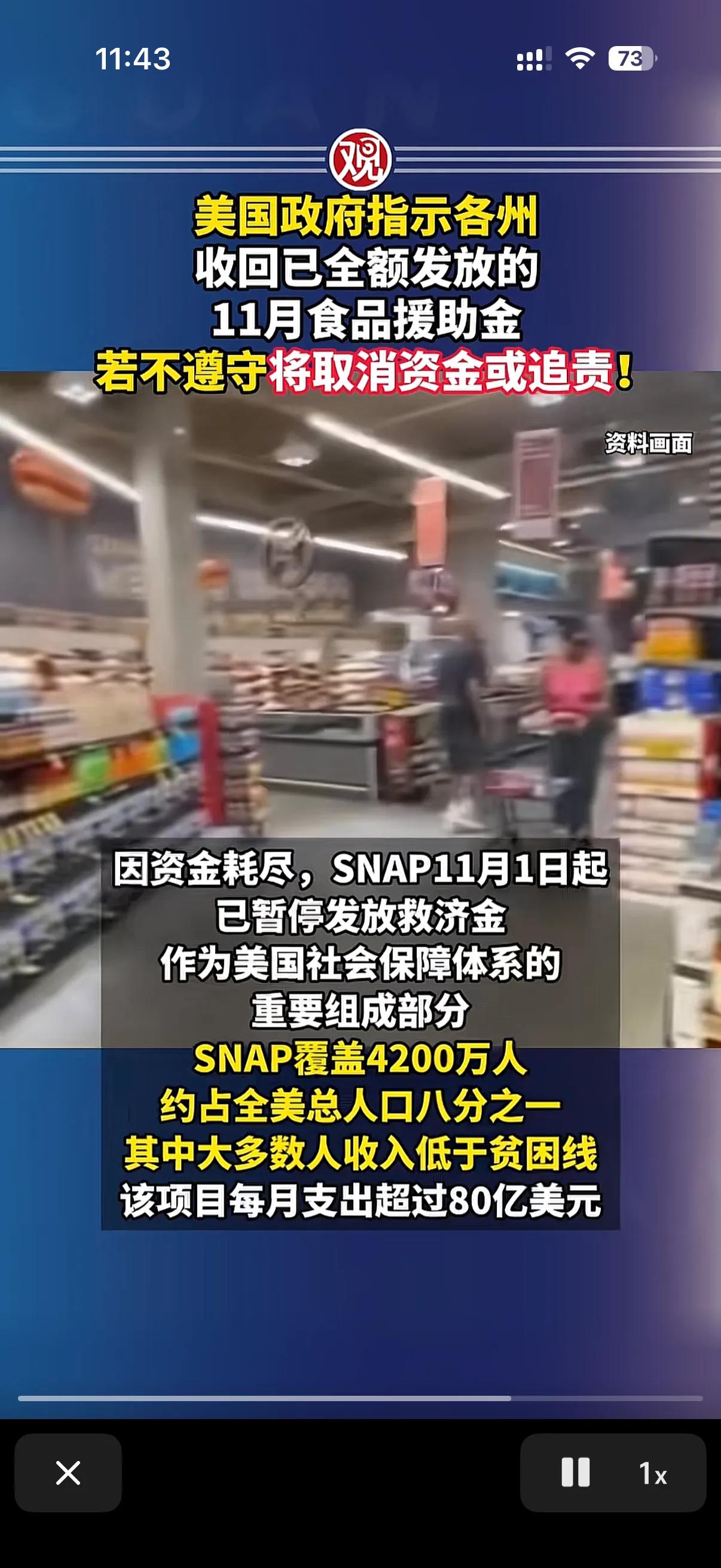 吃了wide都给我吐出来,拿了我的都给我还回来! 最近美国政府不是已经停摆快40天了吗,有很多州都将11月份的救济金发放下去了! 但是美国政府突然对各个州下令,把十一月份已经发下去的救济金给要回来,理由很简单,那就是美国政府马上就要从新开门了,很多人能拿到自己的工资了,这些就不需要救助了,只需要给真正需要救助金的人发放就好了! 如果真的按照美国政府的这条规则办,那么就需要收回百分之三十五的救助金!因此有一部分州的州长表示,如果特朗普因此不再给自己领导的州拨款,那么大家法庭上见,这些州基本都是民主党领导的!