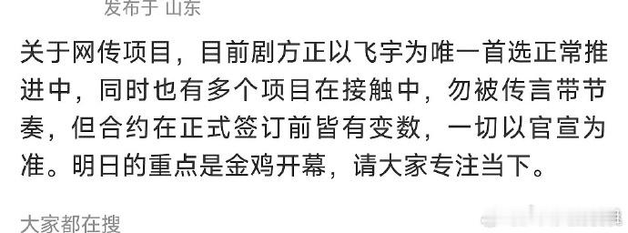 陈飞宇告白尚未正式签订对接回应陈飞宇告白项目正常推进中,尚未正式签订,但合约在正式签订前皆有变数,一切以官宣为准。