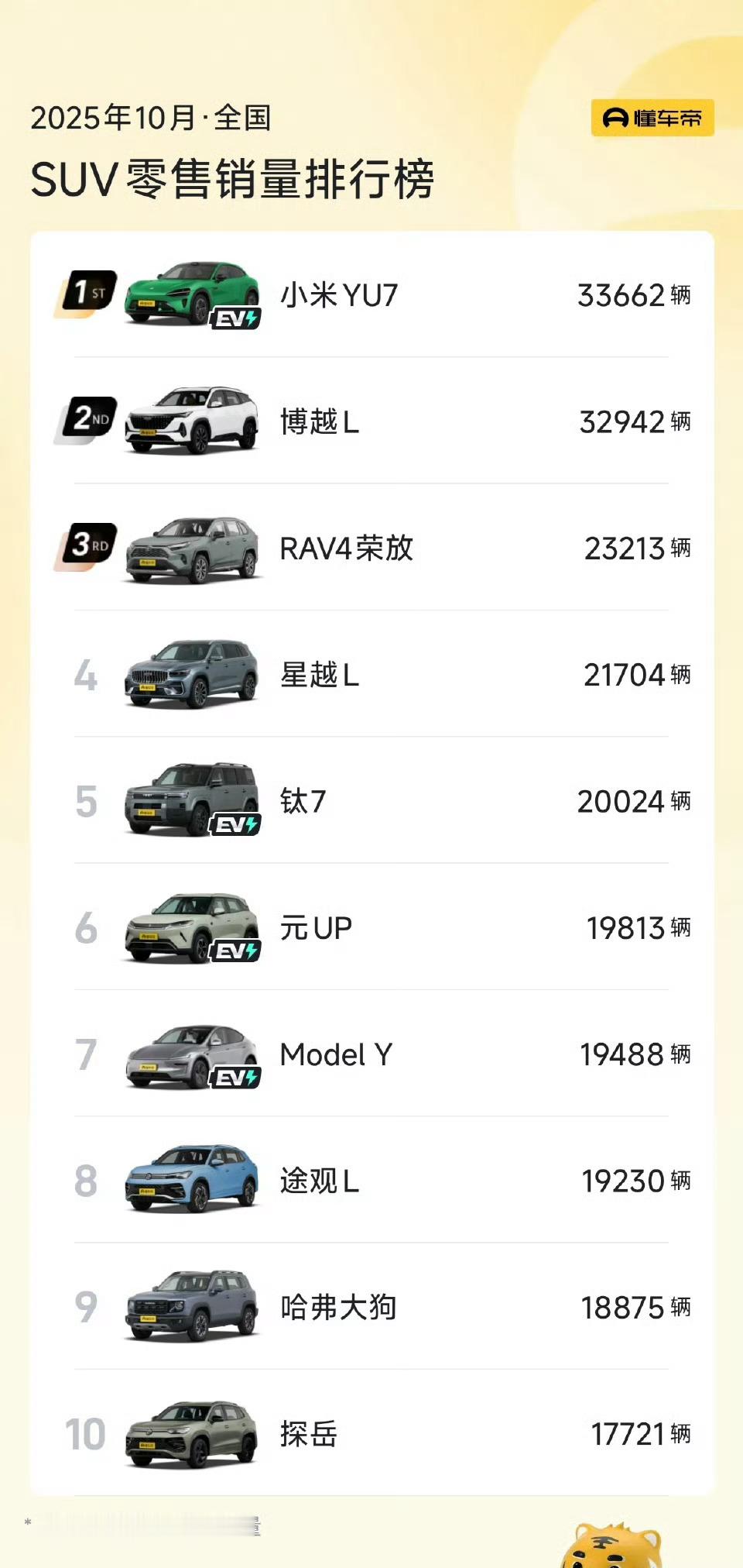 别人的改款是增配降价,小米Su7改款是增配涨价呀,而且还有购置税,不过对小米而言,真不用担心,毕竟销量那么高,而且产能有限,基本和yu7配置对齐,应该还能有些新东西。小米汽车10月零售销量48654辆小米SU7改款涨价近1万