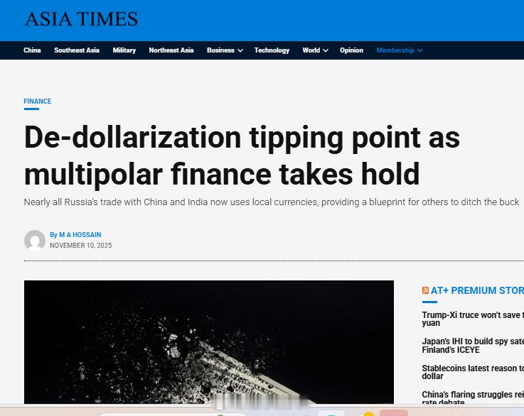 转一篇《亚洲时报》文章:多极金融站稳脚跟,去美元化迎来转折点中俄印三国间几乎所有