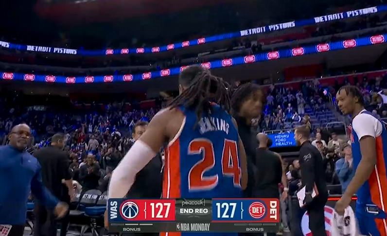 凯肖恩乔治两罚一中,詹金斯绝平三分,卧草,127平,加时赛,坎宁安通过这次助攻拿到了三双,42分10篮板10助攻,活塞逃出生天! ​​​