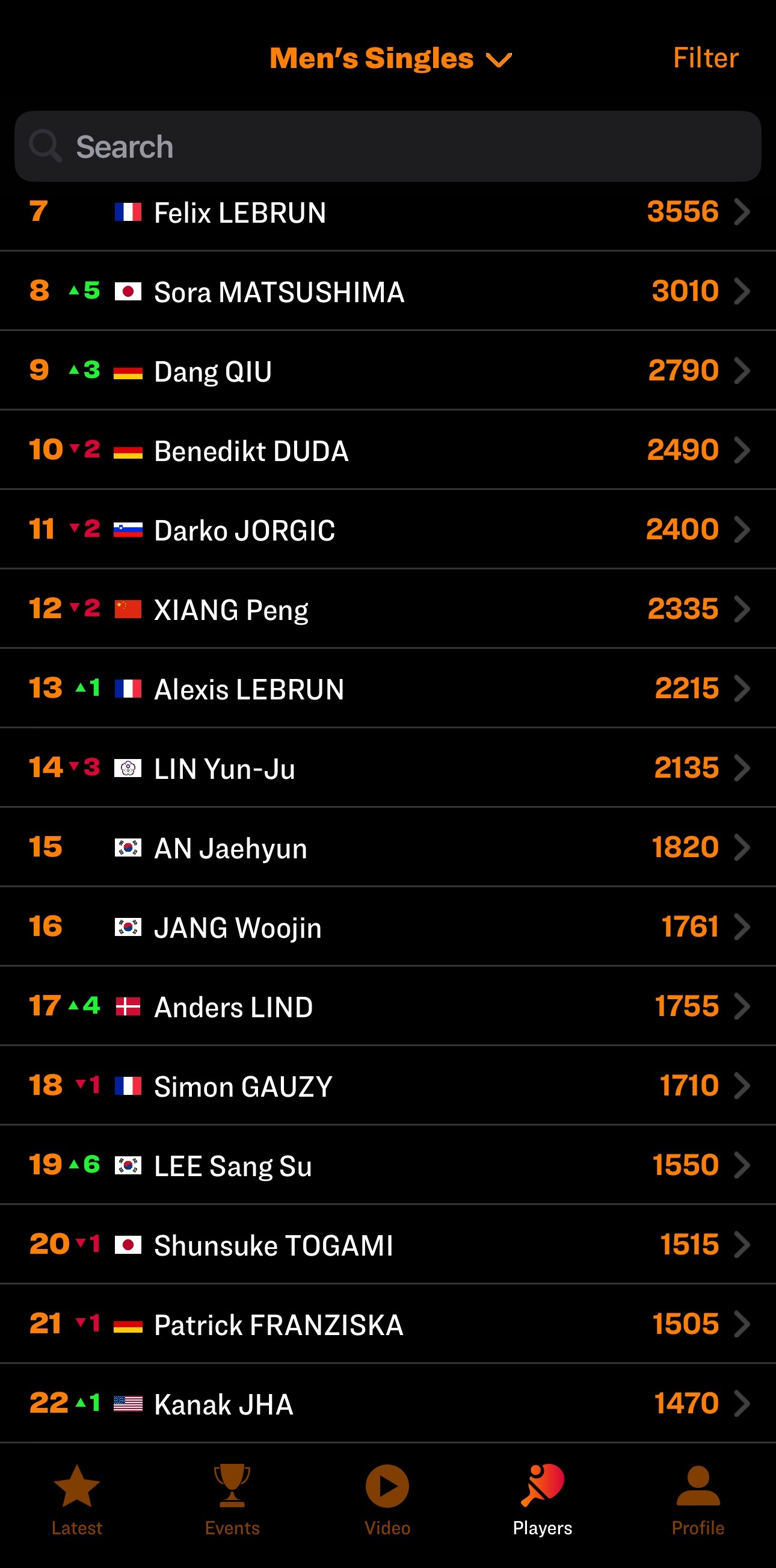 week46男乒世排变化
