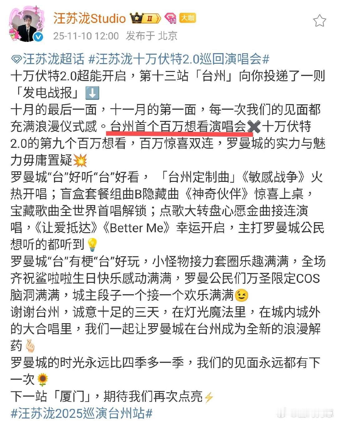 汪苏泷台州首个想看破百万演唱会汪苏泷 好听汪苏泷章若楠合唱牵手了 台州“痛城”名不虚传!合唱牵手名场面直接封神,泷泷的嗓音自带魔力,从《一笑倾城》到《行走的鱼》,全程沉浸在青春里不愿醒~