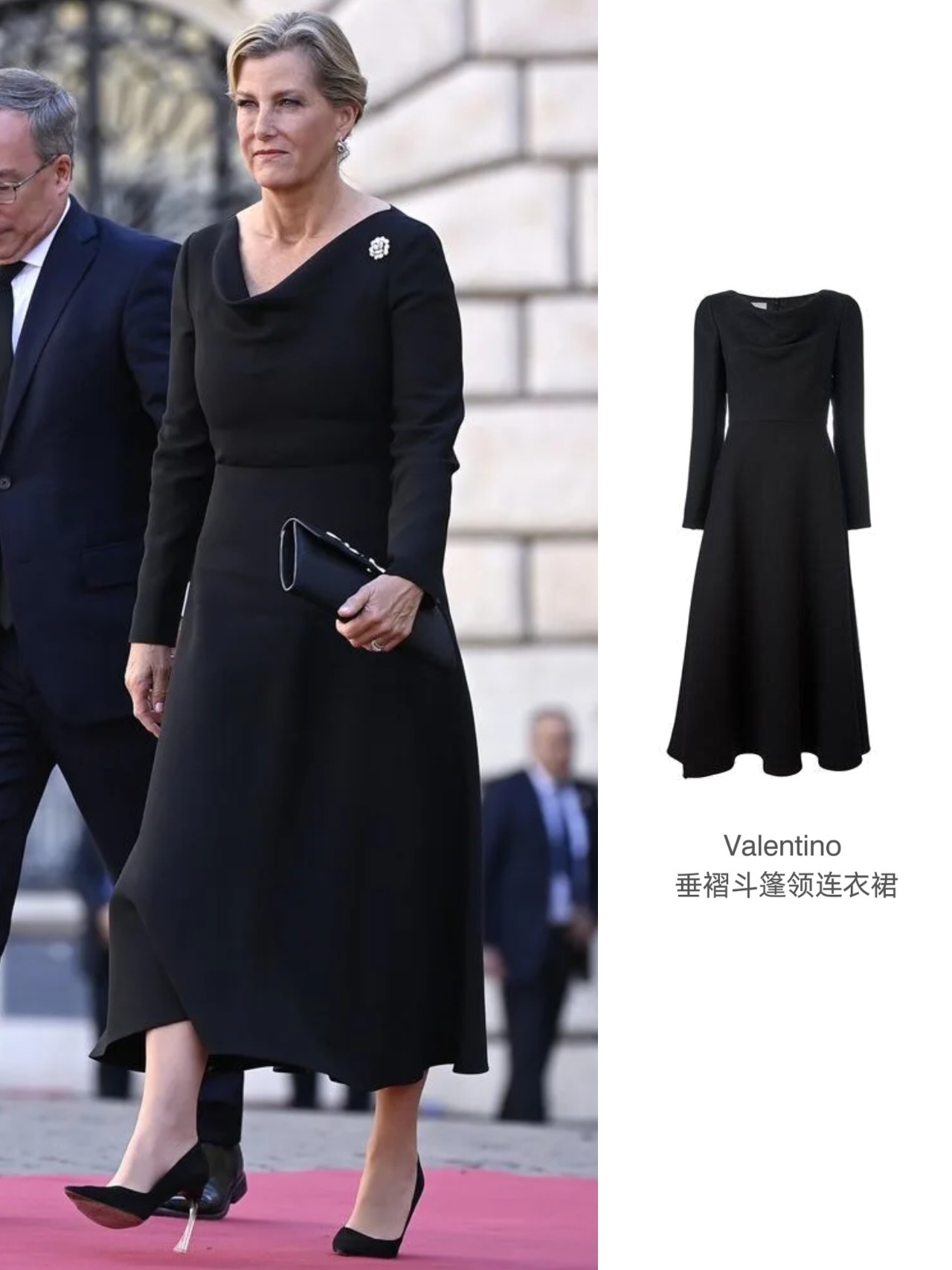 全黑LOOK+红色Poppy胸针,连衣裙是来自华伦天奴,旧衣新穿,挪威的梅特是有同款白色。