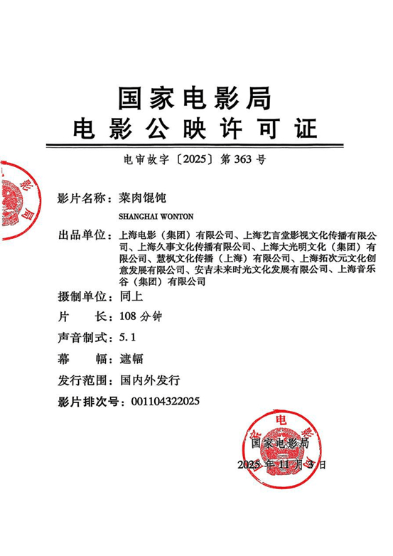 影讯 11.15菜肉馄饨 影片信息(上海、江苏、浙江上映,9点上片)