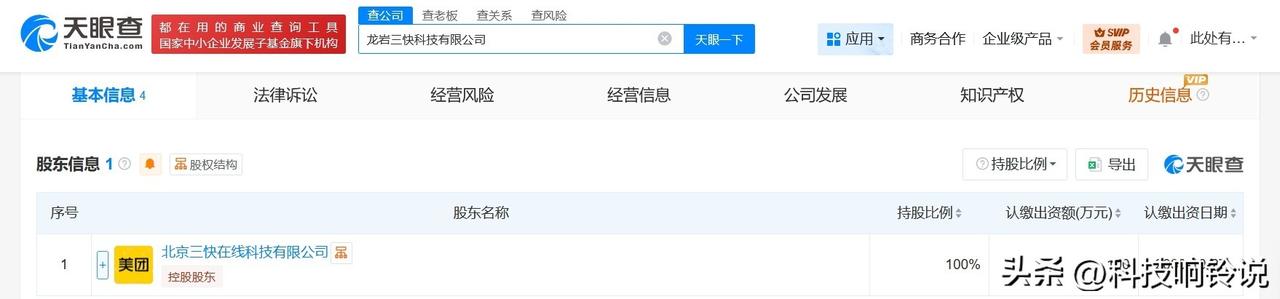 【美团在福建龙岩成立科技公司注册资本100万】 天眼查工商信息显示,近日,龙岩
