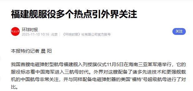 中华人民共和国正式向全世界宣告两件大事: 第一件就是,我们的福建舰航母正式服役了,中国海军从此迈入三航母时代,海军整体实力得到了前所未有的提升!! 第二件事情就是,中国正式迈入全球海洋强国的大门,中国的目标,不再只是近海,而是广阔的深蓝!! 11月5日海南三亚军港,编号18的福建舰往码头一靠,8万余吨的体量往那一站,就把“超级航母”的身份亮得明明白白——要知道这吨位可是实打实的硬指标,比辽宁舰、山东舰的6万余吨整整大了一圈,甲板面积跟美国尼米兹级差不多宽,光是这架子就透着咱造舰水平的跃升。 关键是这船从头到脚没给外国人留一点插手的余地,从船身钢板到核心设备全是“中国制造”的烙印。 总建造师王硕威带着团队一路从辽宁舰的电磁兼容设计干到山东舰的副总设计,到了福建舰直接拿出全自主方案,舰岛比山东舰短了一半,那些乱七八糟的“蘑菇头”天线全没了,换成了集成化的相控阵雷达和电子桅杆,一眼看上去就透着干练,这背后是整个船舶工业体系的硬实力撑着。 福建舰最让人提气的还得是那电磁弹射器,这玩意儿以前可是美国的独门绝技,结果咱不仅搞出来了,还比美国同行的靠谱多了。 美国福特级航母的电磁弹射系统简直是个“麻烦制造机”,用的还是上世纪90年代的中压交流技术,跟用旧电脑跑新软件似的,动不动就出故障,2022年双航母演练时居然5天弹不了飞机,活脱脱成了“核动力观光船”,连特朗普都急得喊要改回蒸汽弹射。 而福建舰用的是自主研发的中压直流系统,电力分配灵活得很,一根弹射器坏了不影响其他的,2025年3月就完成了歼-15T、歼-35和空警-600的弹射起降,半年里反复验证,服役时就具备了作战能力,这效率比福特号服役8年还没利索强太多。 舰载机编队更是补上了以前的短板,形成了真正的体系化战力。12架歼-35隐身战机负责踹门,24架歼-15T重型战机带弹强攻,再加上5架空警-600预警机盯着远方,这搭配跟世界顶级水平看齐了。 特别是空警-600,能在距母舰400公里外巡航5小时以上,以前靠直升机预警根本摸不透远处的情况,现在相当于给航母装了千里眼,隐身战机、超音速导弹来了都能提前察觉,这才有了远海独立作战的底气。 反观美国福特级,F-35C到现在还没完全兼容好,咱这刚服役就配齐了全套阵容,等于一出场就站在了决赛圈。 三航母时代的到来,彻底改变了海军的部署格局。以前辽宁舰守渤海、山东舰镇南海,现在福建舰一加入,三个方向都能稳住阵脚,还能凑出双航母编队远洋训练。 这可不是摆样子,看看亚丁湾护航就知道,从2008年到现在派了40多批编队,要是没有足够的航母支撑,哪能常年在印度洋保持存在。 现在有了福建舰,远洋存在的时间能更长,覆盖范围能更广,毕竟咱90%以上的海外贸易都靠海运,这些航线以前得看别人脸色,现在自家航母能护着了,这才是海洋强国的实在好处。 说迈入海洋强国可不是喊口号,福建舰的造价才60亿美元,不到福特号的一半,却实现了同等甚至更强的战力,这性价比背后是全产业链的优势。 美国航母体系是冷战传下来的老摊子,改起来牵一发而动全身,咱从零开始搭建的新体系,天生就灵活高效。 20年前还在改装苏联的旧航母,8年前才下水第一艘国产航母,现在就有了电磁弹射超级航母,这速度放眼全球都少见。 更别说福建舰还留了后手,设计时就给隐身无人机、激光武器这些未来装备留了接口,而福特级想改都得大动干戈,这就是眼光的差距。 从黄海的海试到南海的训练,福建舰的汽笛响遍了中国海疆,也让世界看到了中国向海图强的决心。以前说起深蓝海军,大家只认美国,现在福建舰用实力证明,咱不仅能守好家门口,还能在更广阔的海洋维护自己的利益。 三航母编队的航迹延伸到哪里,中国的海洋权益就保障到哪里,那些靠坚船利炮维持的旧秩序该换一换了,这片深蓝终究要迎来更公平合理的新样子。