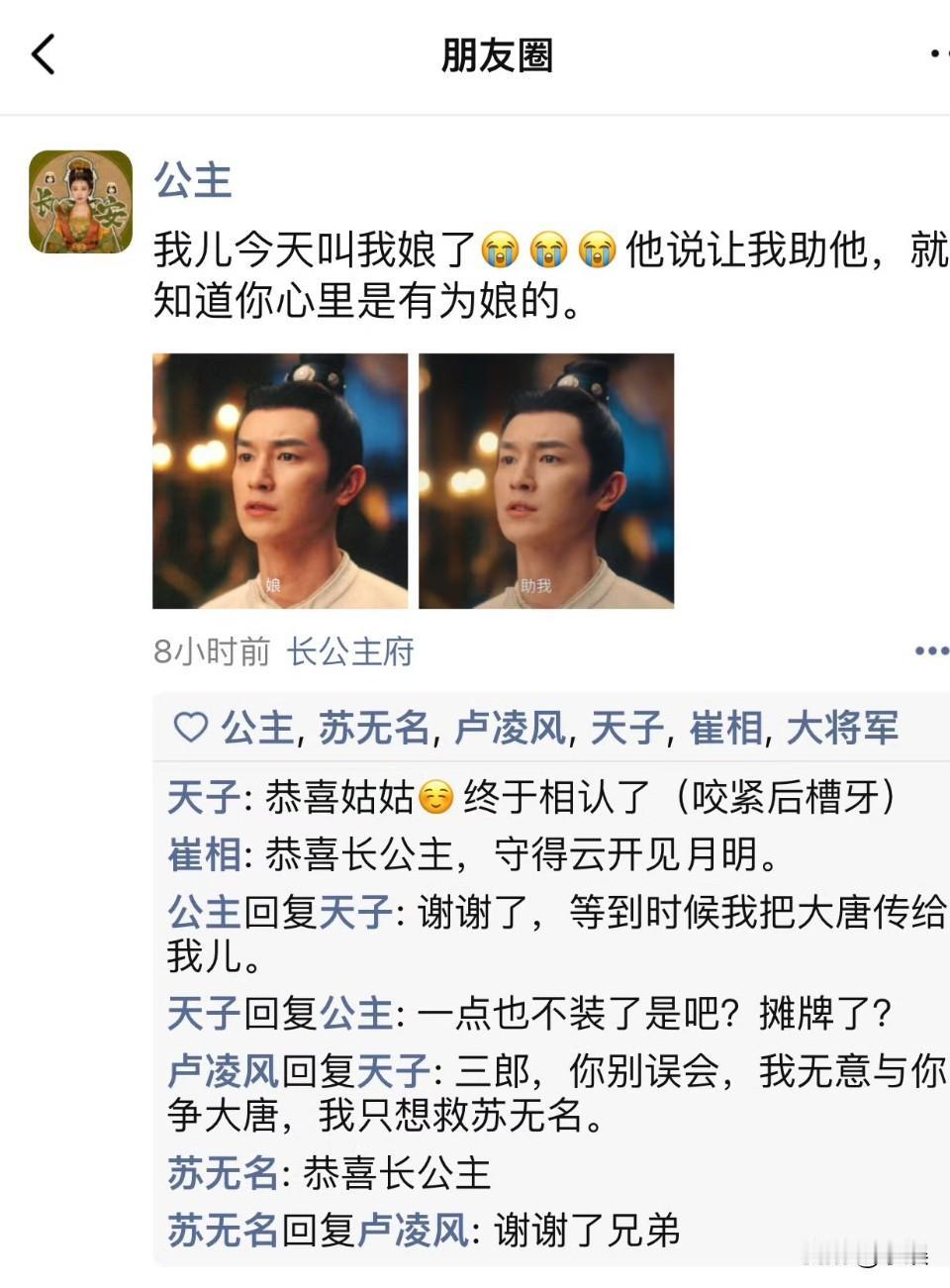 刷到了长公主的朋友圈哈哈哈哈哈 卢凌风不如跟长公主干吧[吐舌]老丈人是全国最大HR,老婆是人形照相机,苏无名狄仁杰弟子会断案,嫂子是暗探,还有孙思邈徒弟给当奶妈(以后就是御医),徒弟正义勇敢薛仁贵后代。这最强组合啊[狗头]哈哈哈卢凌风 唐朝长公主