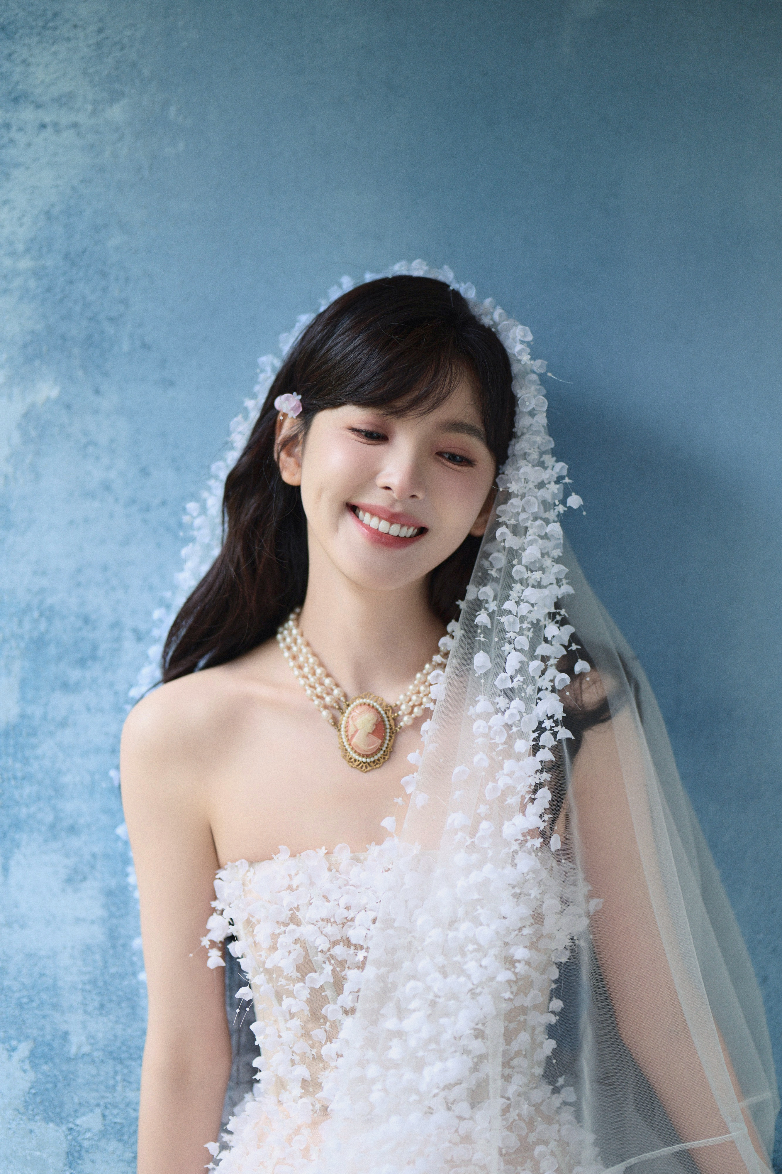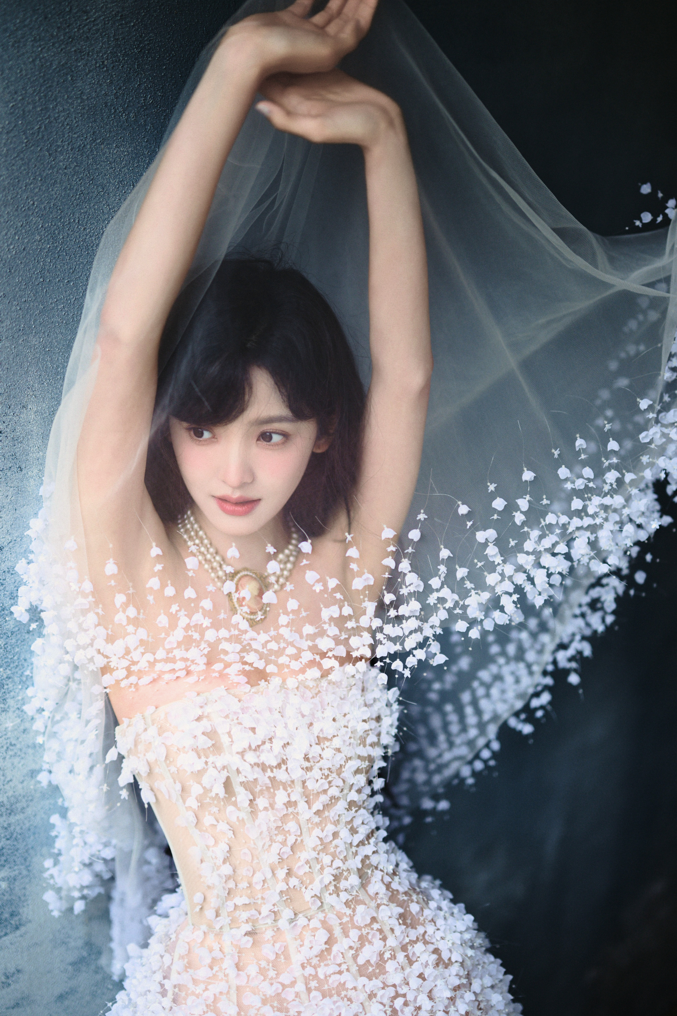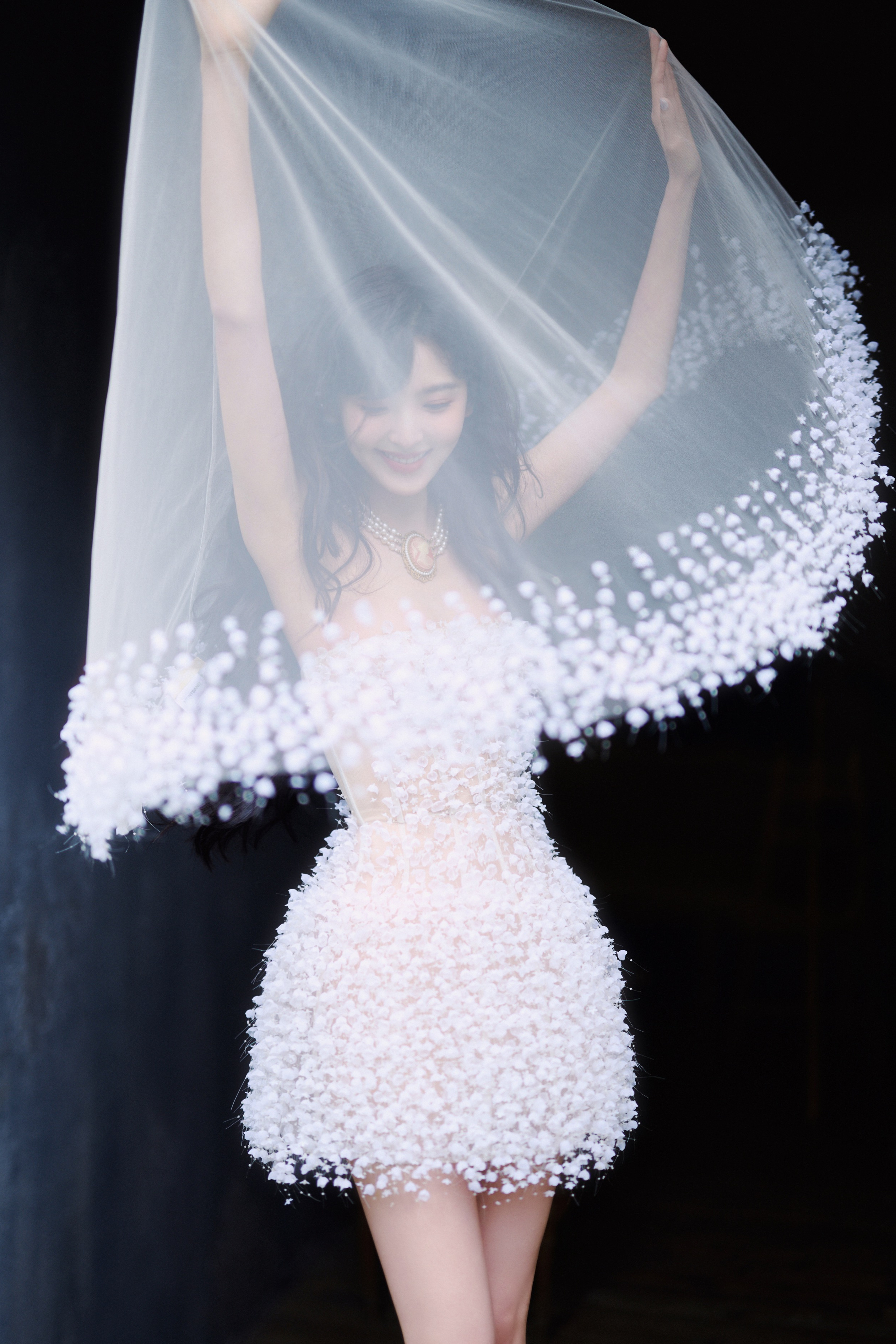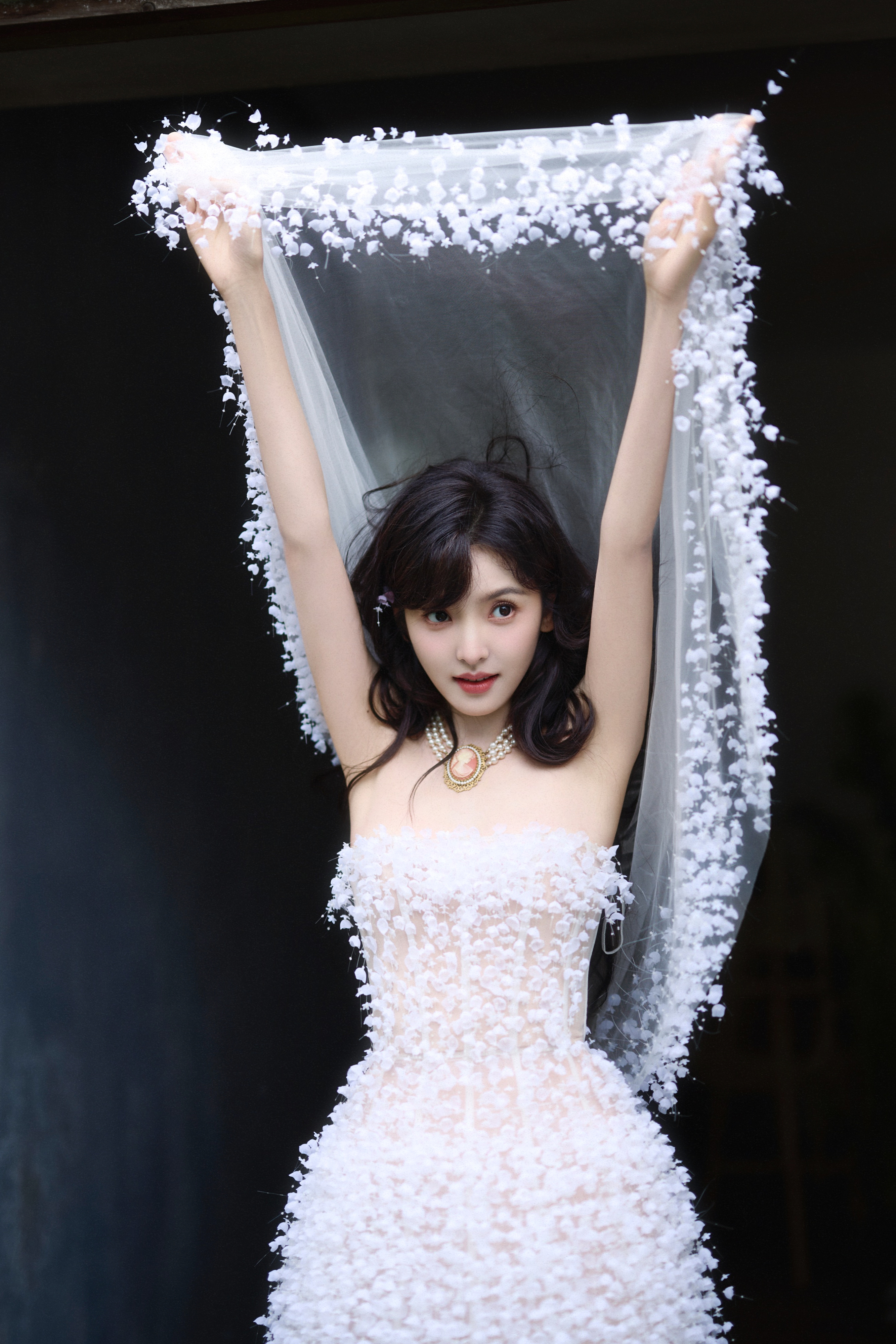 章若楠 当白纱缀满细碎的花,像把春日揉进裙摆里。发梢的浅粉与颈间的珍珠相衬,连空气都浸着软乎乎的甜。