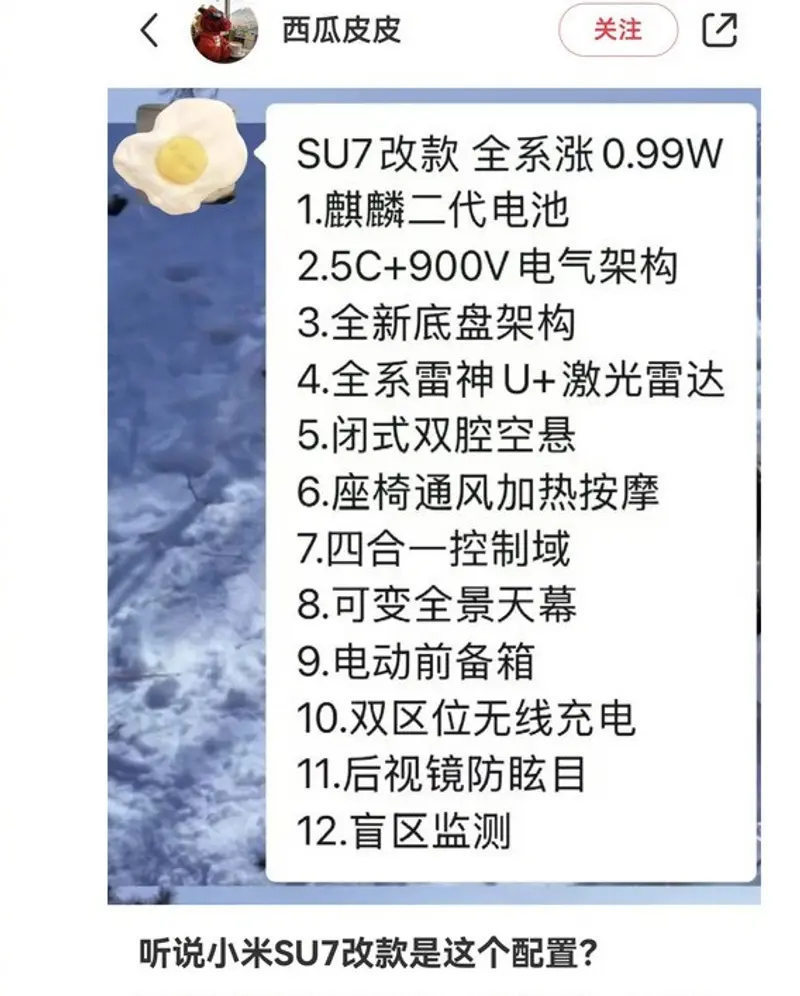 网传小米SU7要改款,涨价1万,购置税多1.5万,整体贵2.5万,拉个升级清单,假如这些配置属实, 您觉得价格合适吗?