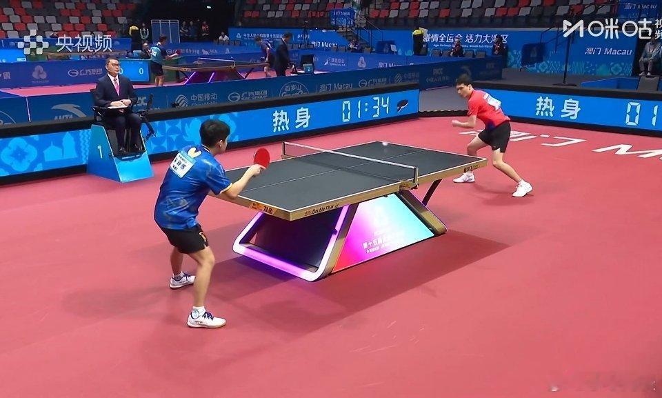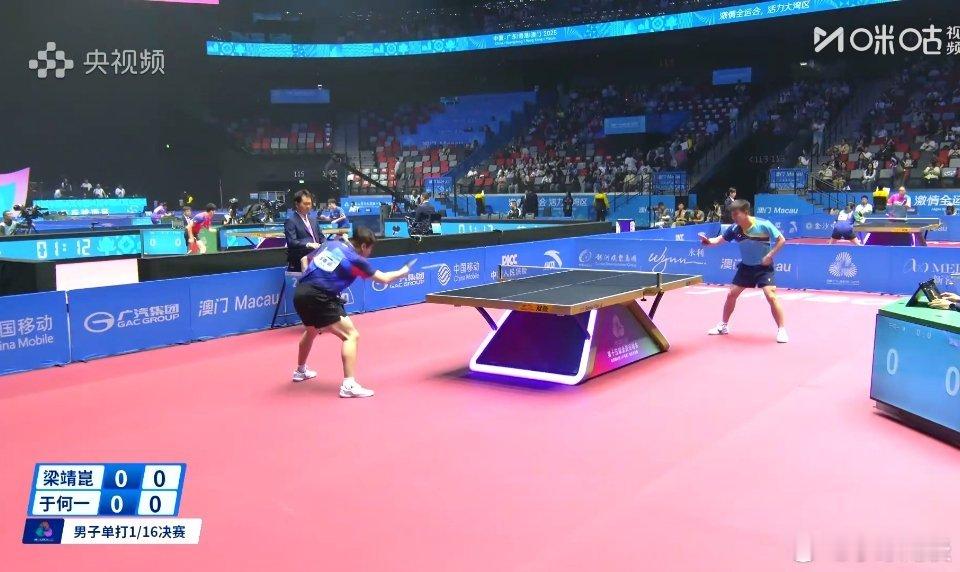 第十五届全运会乒乓球赛事成年组男单1/16晋级赛开始了,1号桌是海南队的林诗栋对阵江苏队的孙闻;2号桌是河北队的梁靖崑对阵河南队的于何一,各位选手加油吧!