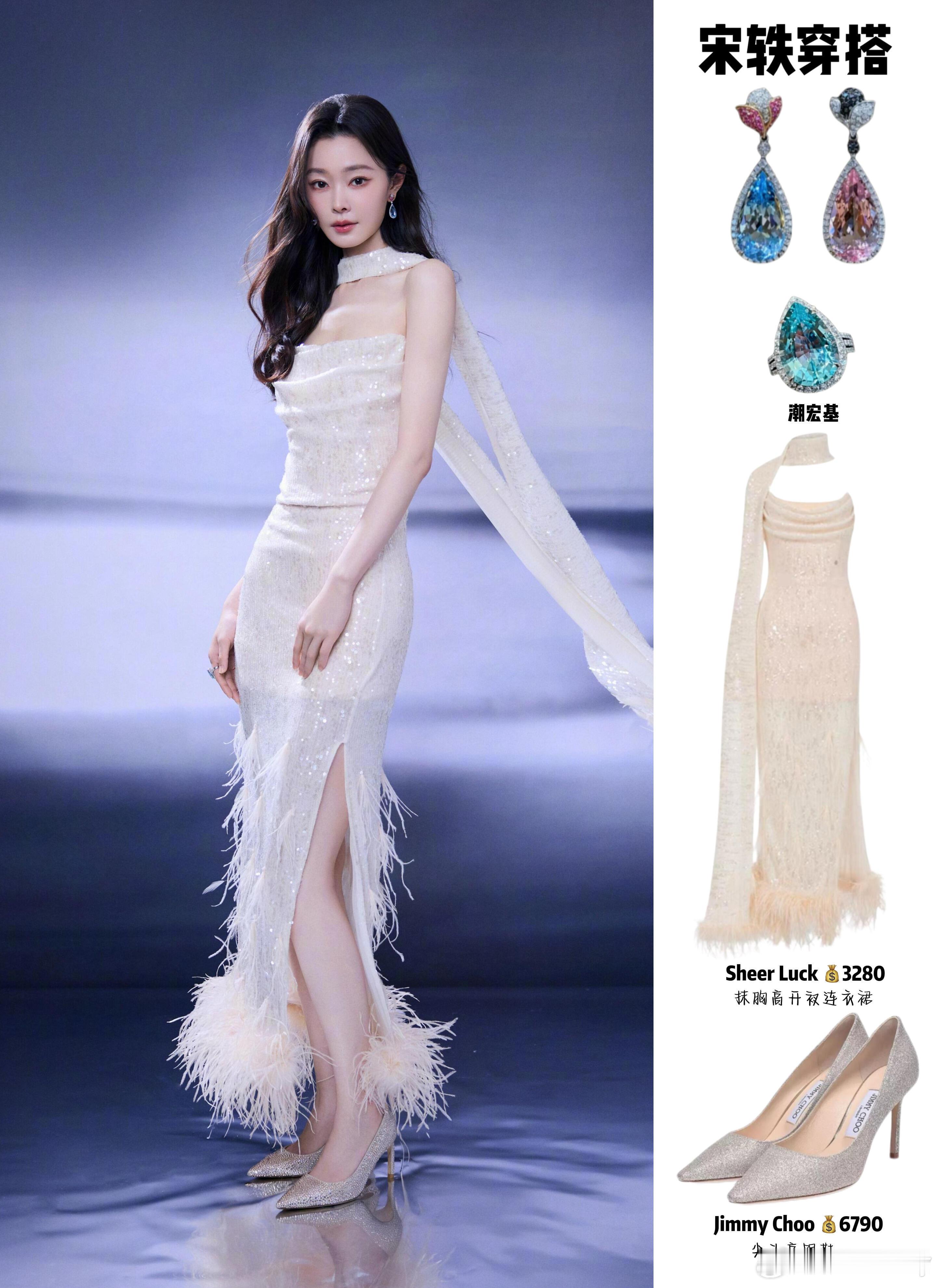 宋轶这香槟裙把氛围感穿明白了!闪片裙+羽毛裙摆太绝了!挂脖设计露肩颈,开叉还能偷偷秀腿~配饰选彩色水滴款,和裙子的闪呼应又不撞色,头发卷成大波浪更柔!搭同色系闪钻高跟鞋,全身顺色显贵气,参加活动/约会穿直接赢麻!