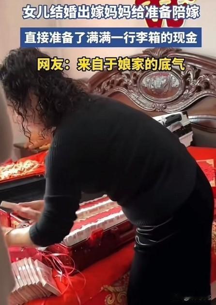 满满一行李箱的现金当陪嫁,这女儿的妈妈一下子在网上火了。女儿结婚出嫁,是一家子的大事。当妈的心里满是不舍与牵挂。但当妈的也都是过来人,为了让自己的女儿到了婆家腰杆子站得直,说话硬气,日子过得红红火火,自己也不丢脸,立刻到银行取了一箱子钱,直接打包,给女儿当了陪嫁。 女儿看到了这一切,立刻眼泪就下来了。妈妈过日子是省吃俭用的,每一分钱都精打细算,从来不舍得给自己买一件新衣服,不舍得去吃一顿好吃的,攒下来的一些钱都给我当嫁妆了。 消息一传出来,网友间炸了锅。有人的说;” 这个妈妈太不靠谱了,有钱可以给女儿存着以备急时之需比什么都强。陪嫁送现金给女儿看则风光实为不妥,俗话说不怕贼偷就怕贼惦记着,打个比方并不是说女婿是贼,人生的道路长着呢,谁知今后会怎么样?当然有钱人也不在乎这三瓜两枣,花钱比不花钱强!” 也有人说“我也是这样认为财不外露!你家再有钱也不能这样做!这样做法会带来安全隐患!你放者无意观者有意!这种摆富实地不该!不出事一阵风过!出了事千古罪人!“ 还有人说:”“妈妈关爱女儿,无可厚非,但要有一个度,你给钱作为陪嫁,一箱现金,如果你女儿见许多,她要争气还好一点,不争气,她啥都不做,有许多钱够她花就行,这位母亲的做法,有待提升。” 友友们,你怎么看这件事情?我们一起在评论区聊聊。(图片题材来自网络)女方的结婚陪嫁 新娘的陪嫁 女儿结婚嫁妆 新娘陪嫁