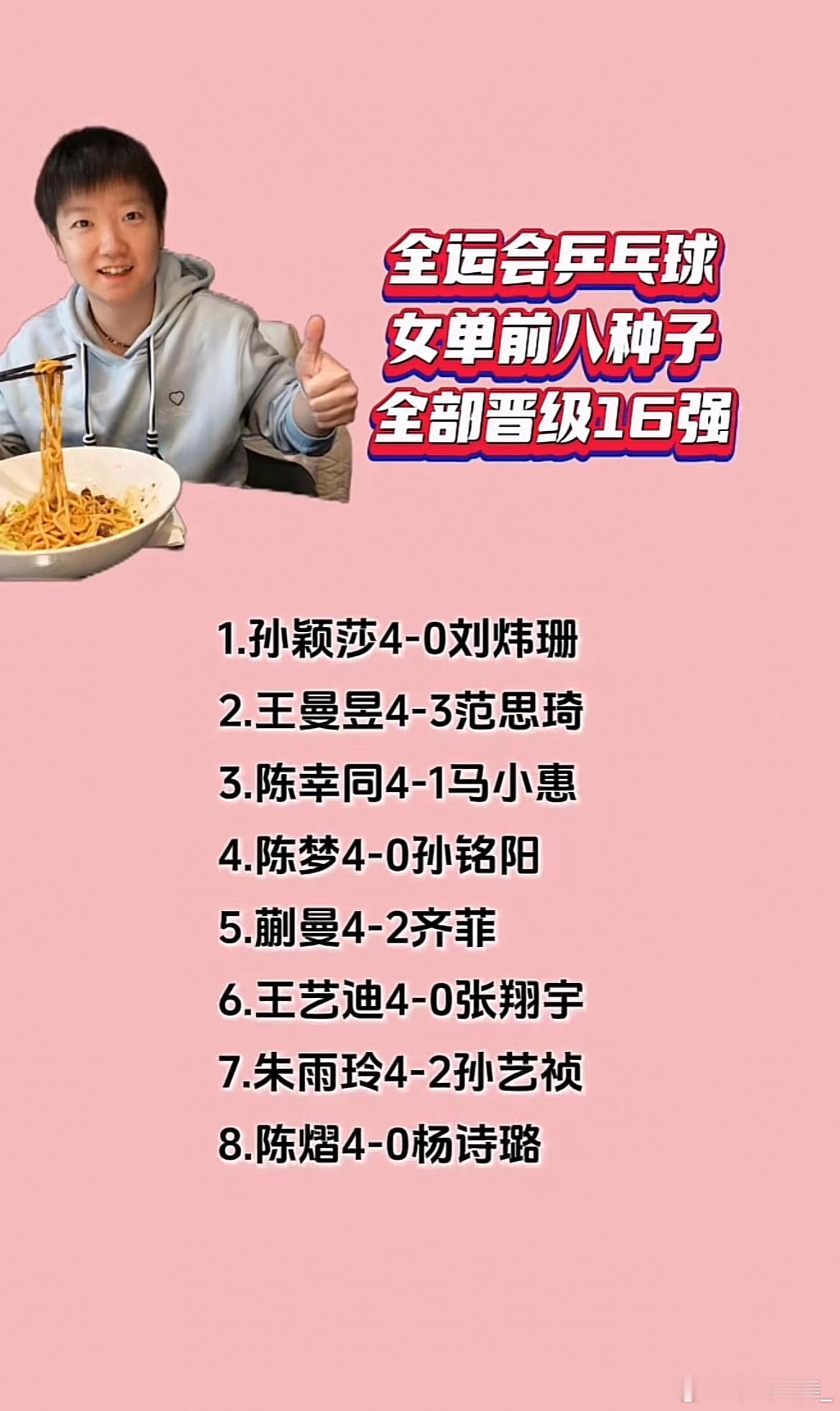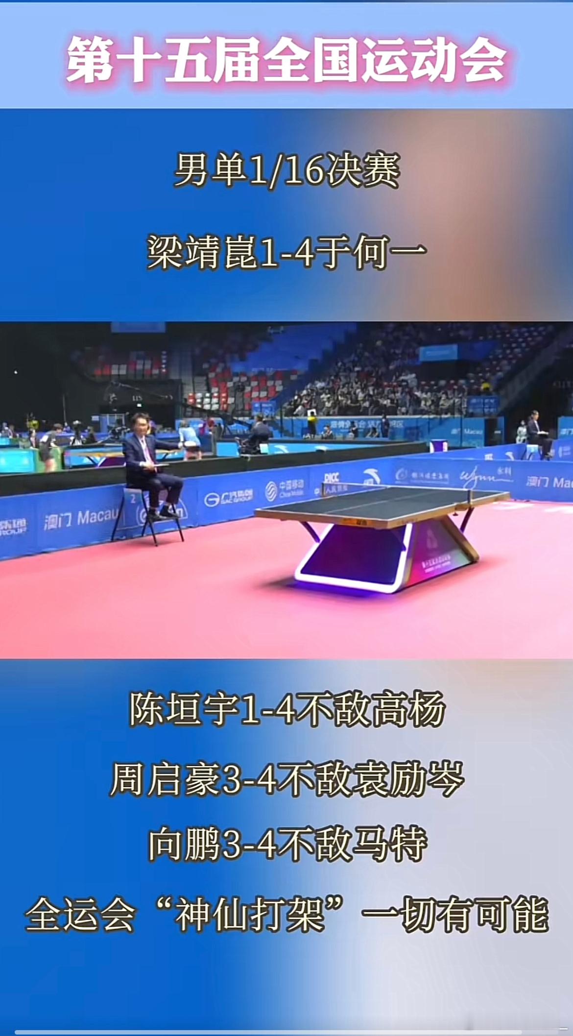 全运会乒乓球已经开始了两天的比赛,可是男单前8号种子已经淘汰了一半!梁靖崑,向鹏,陈垣宇,周启豪四人都已出局!相比之下,女子前八号种子却全部晋级16强!男队真的要加油了!