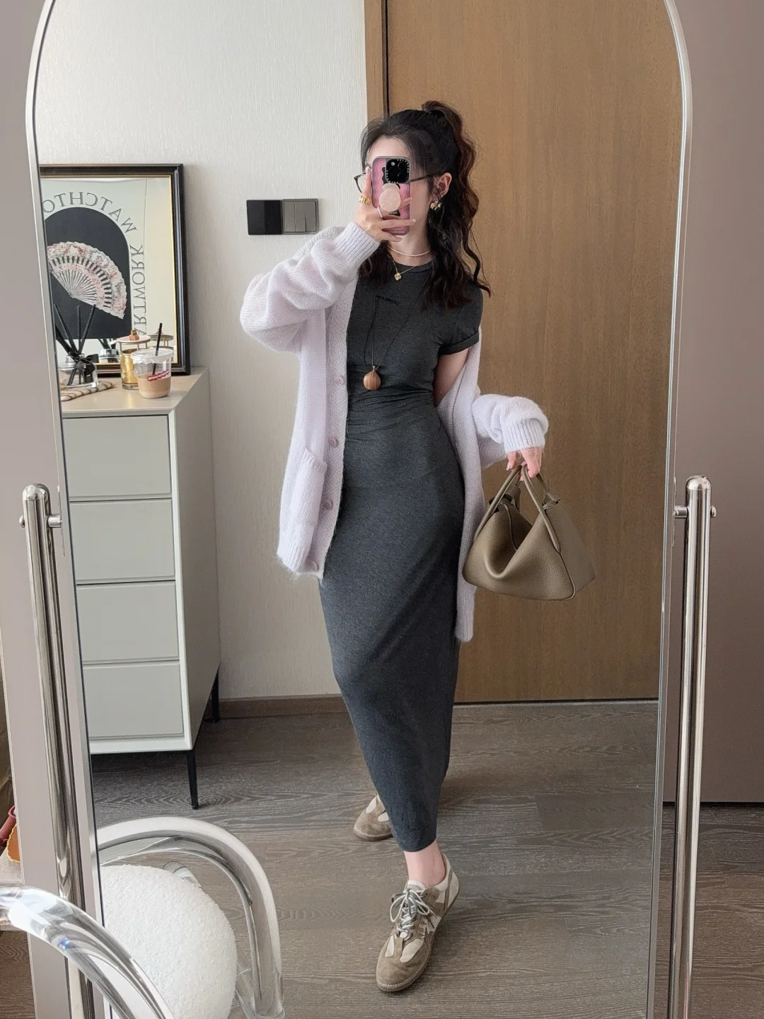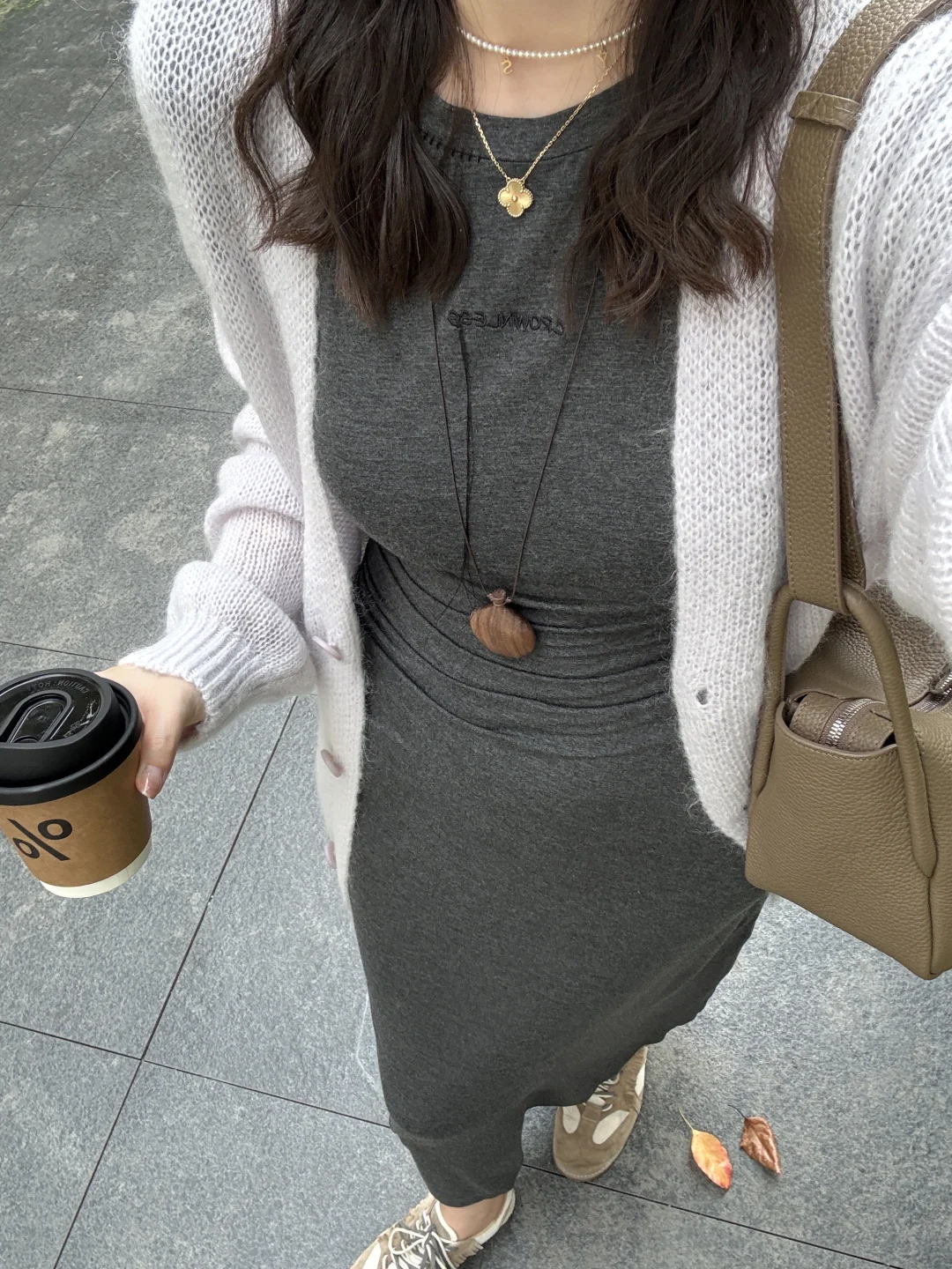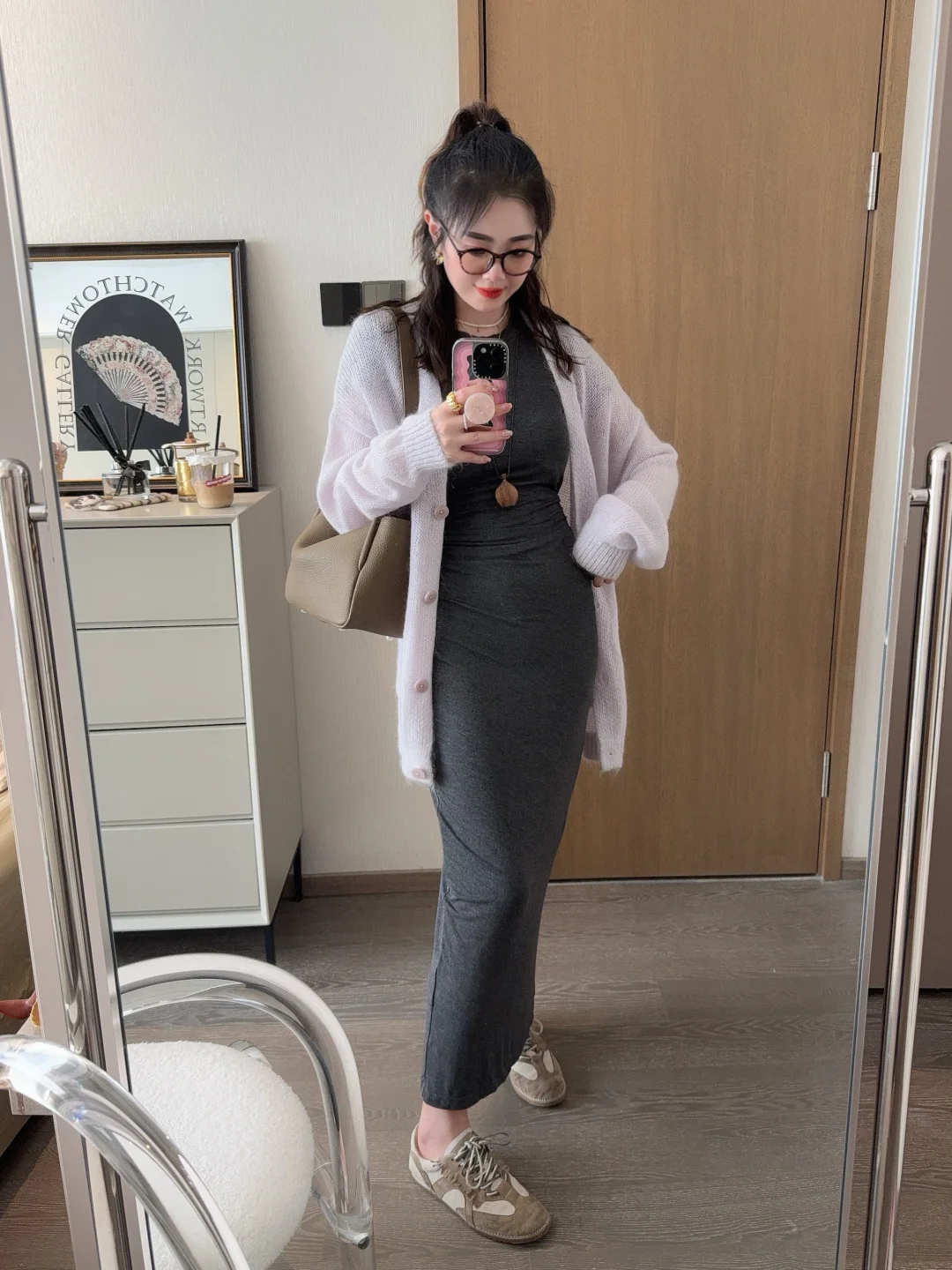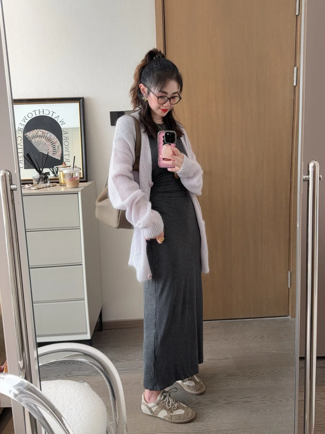 早秋纸片人CP 肯豆裙➕开衫|韩女穿搭好绝!