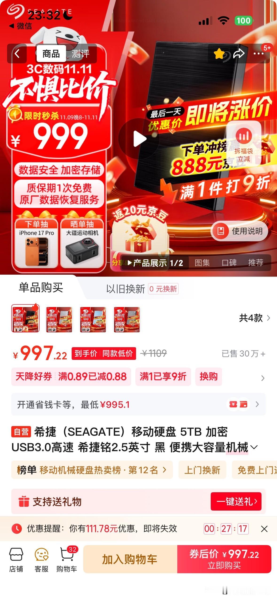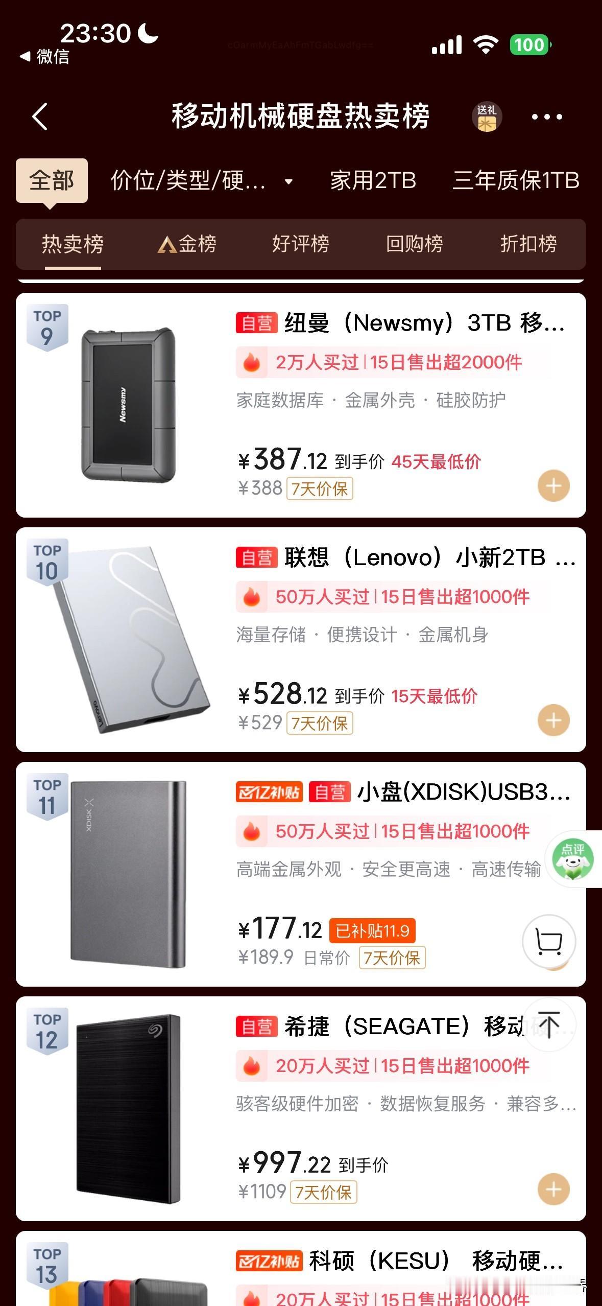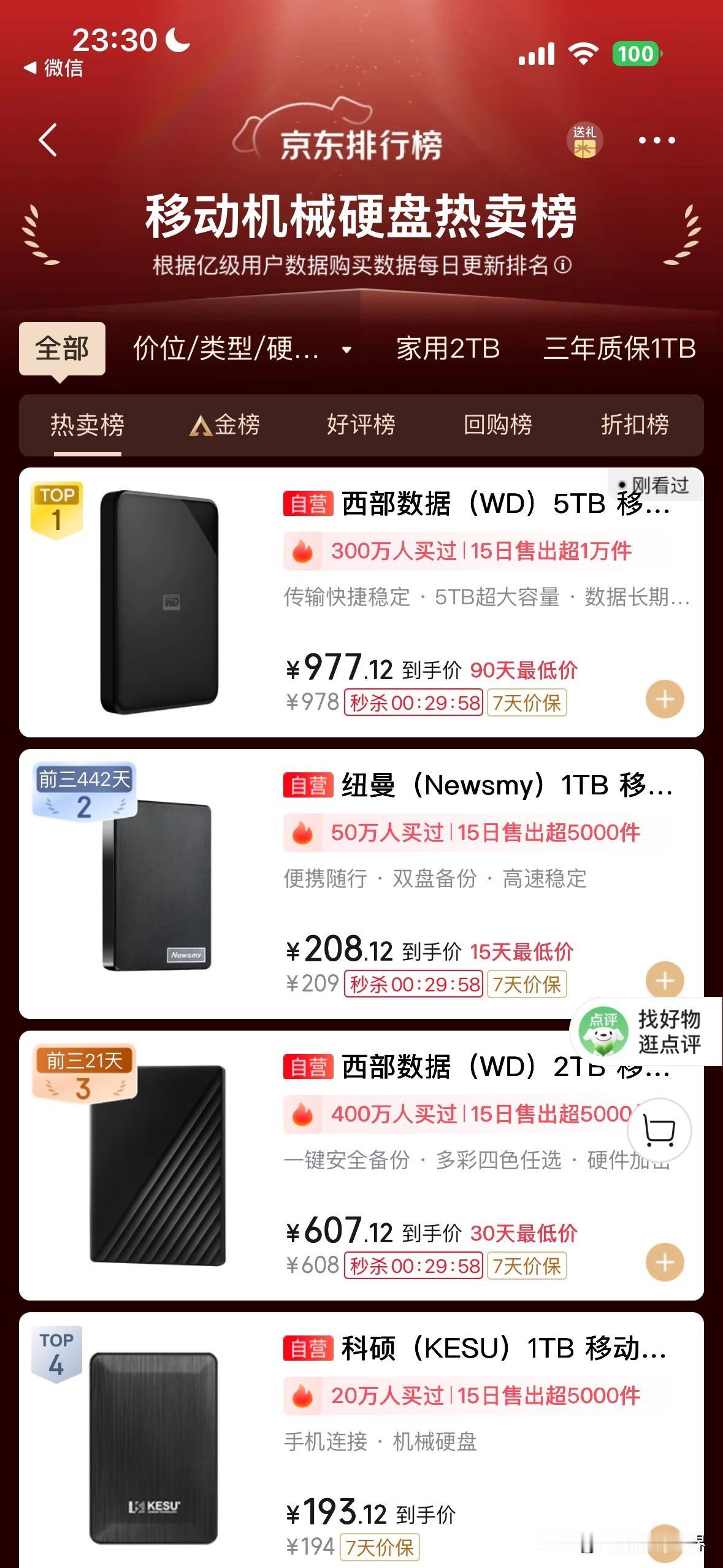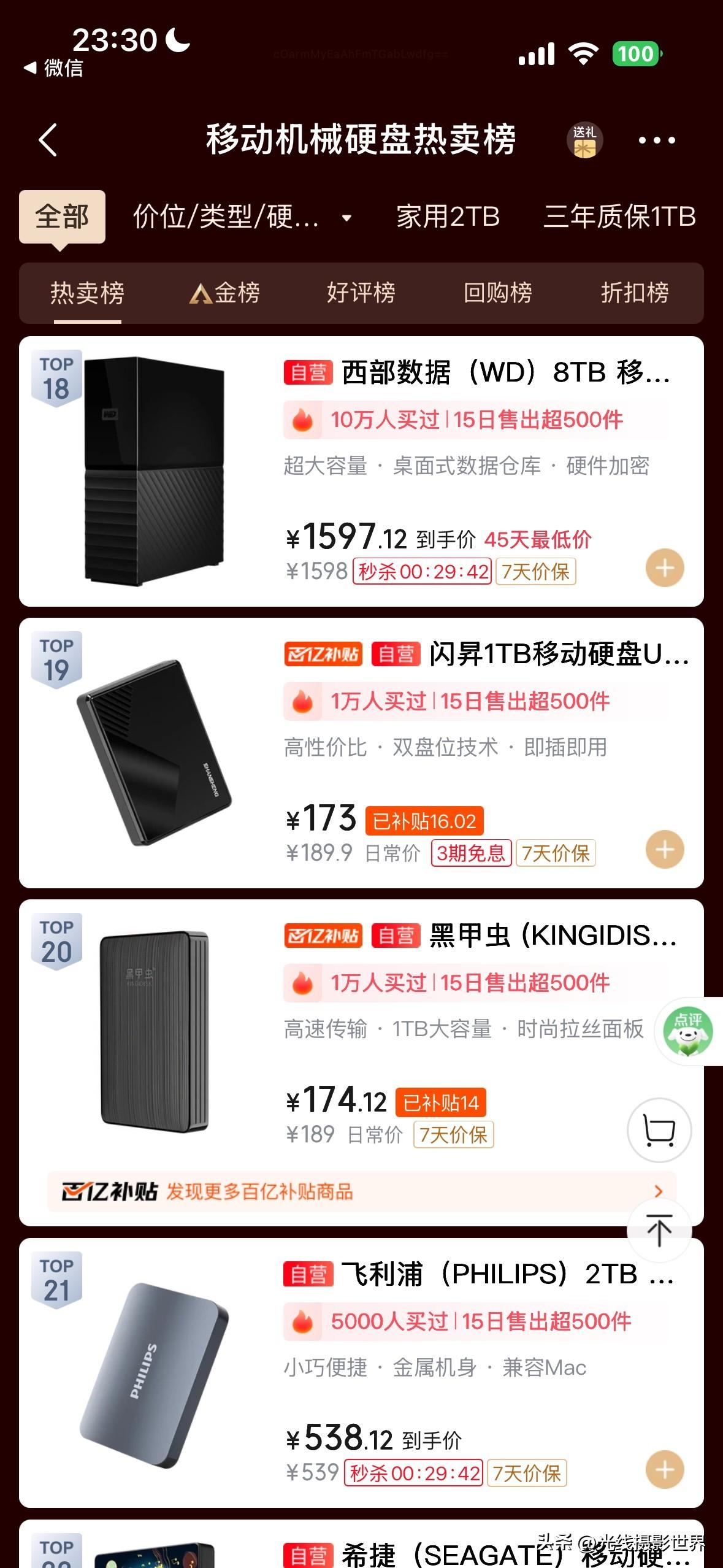 最近,内存,固态硬盘,机械硬盘,全部都在疯狂大涨价!但是,好像唯独2.5英寸的机械硬盘,没怎么涨价吧?!2025年11月11日深夜,我看了看移动机械硬盘销量排行榜,销量冠军,西部数据的5TB移动硬盘,977块钱……这个价格,好像基本没怎么变化?! 嗯,2TB的西部数据移动硬盘,也要607块钱! 所以,导致5TB的这个西部数据移动硬盘,性价比真的拉爆了啊! 还好还好……光线摄影世界曾兰谈天说地