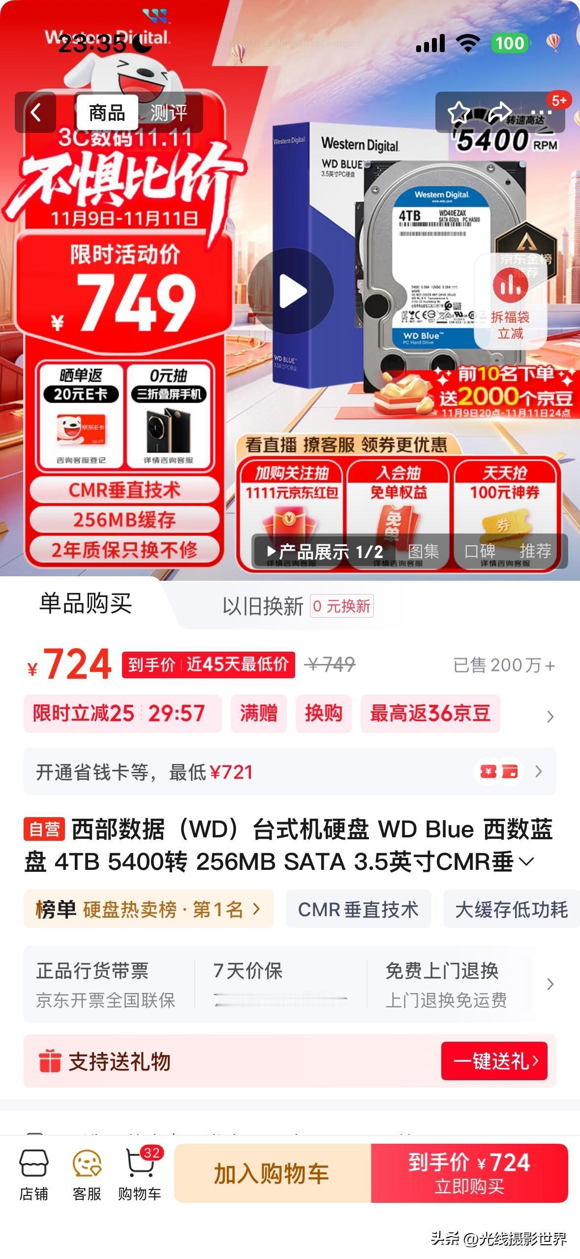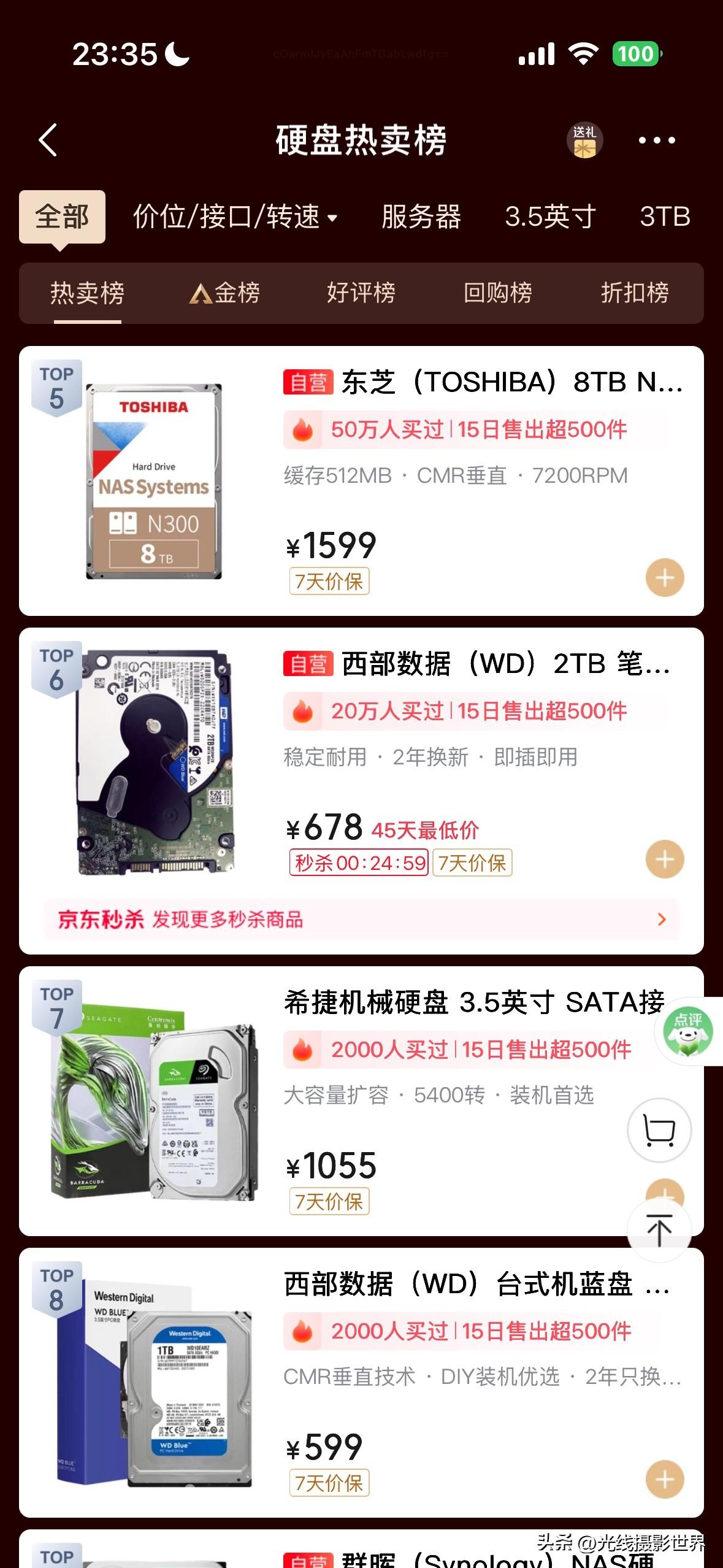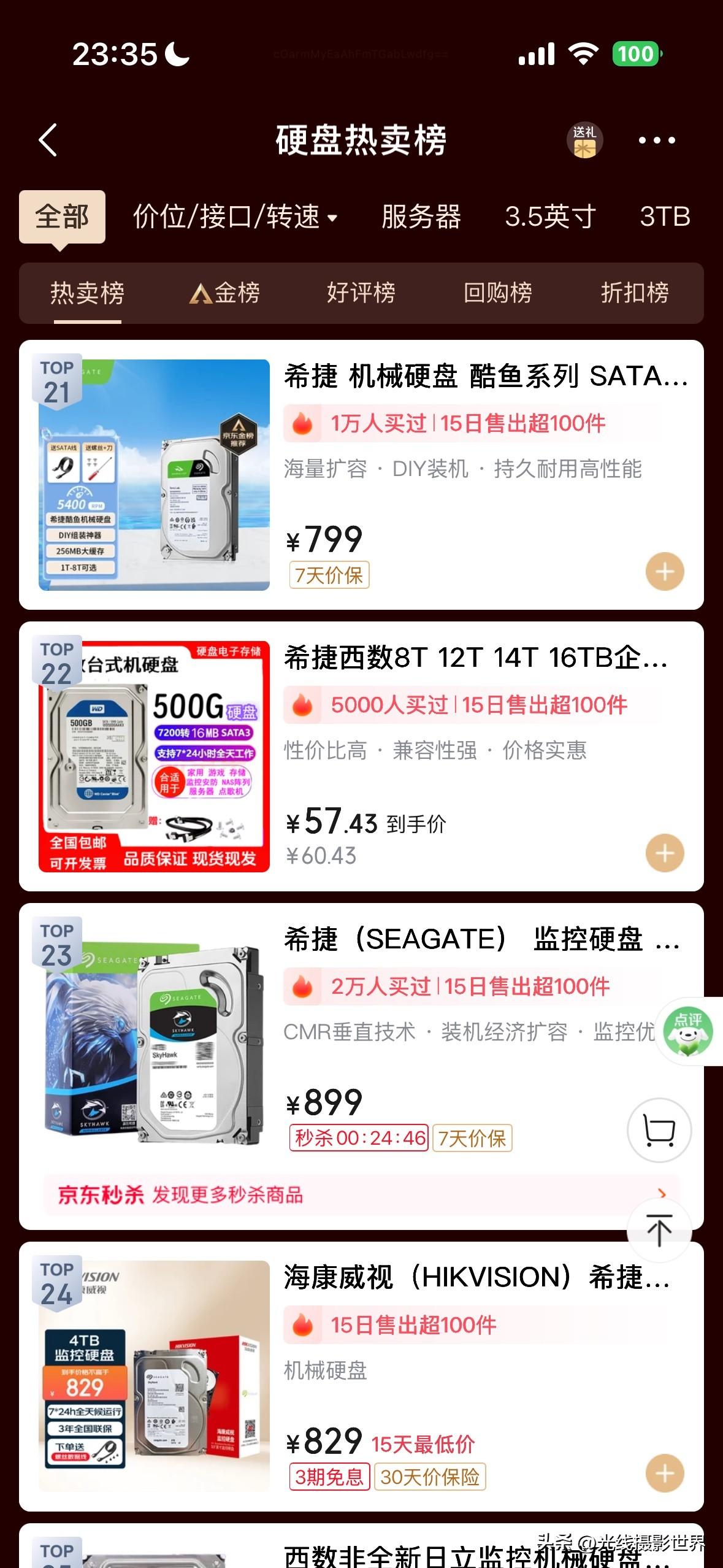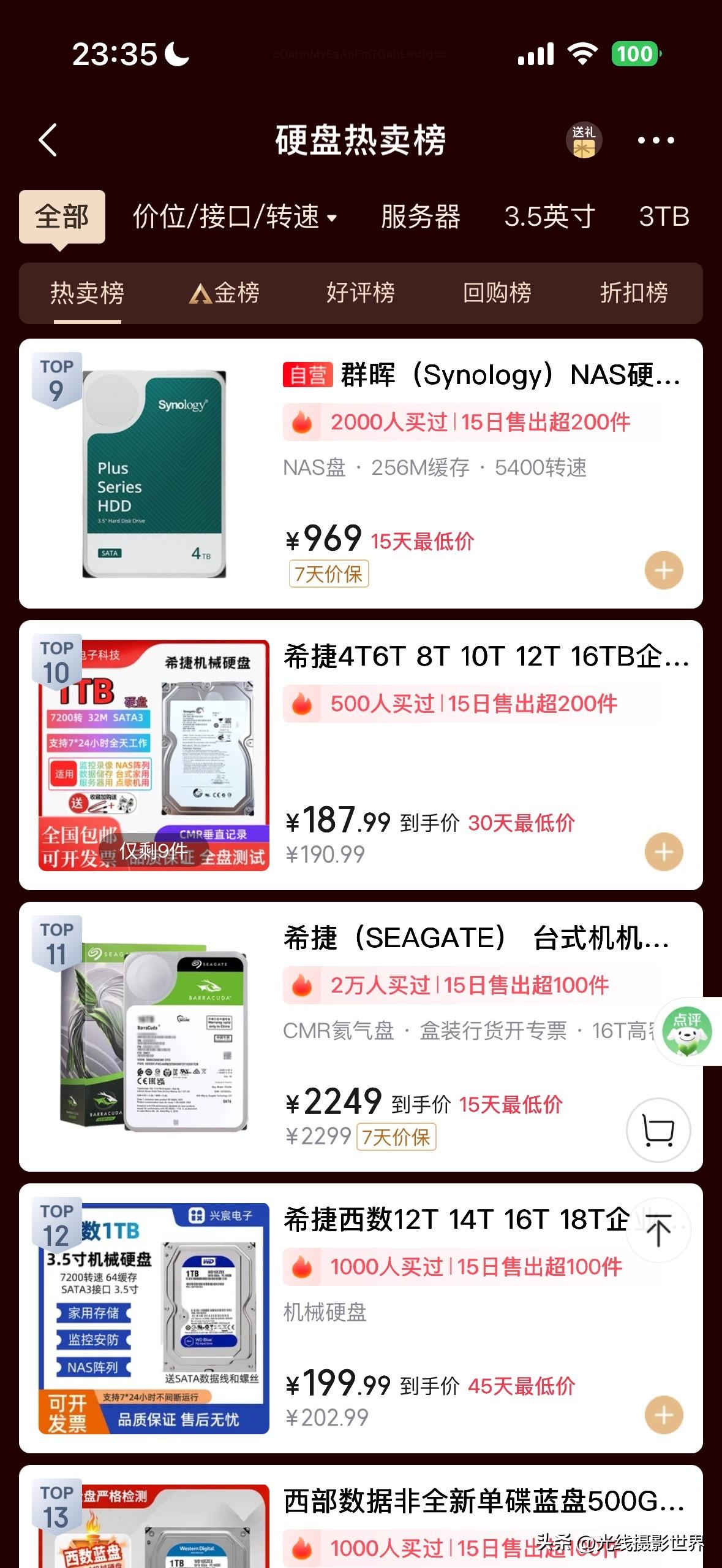 哎!因为这该死的AI人工智能,3.5英寸机械硬盘,最近真的太贵了啊!也是因为涨价,所以……2025年11月11日晚上的京东的硬盘销量排行榜……惨不忍睹啊!销量冠军的西部数据4TB硬盘,15天才售出5000多个……我的个天啊! 好吧,据说,内存,固态硬盘,闪存,高端机械硬盘……可能会一直紧张到2026年年底甚至2027年! 好吧,2026年,大家少拍点照片和视频……慎重一点按下快门或者录制按键! 我估计,想要买16TB或者更大的NAS或者企业级别高端机械硬盘的小伙伴们,要耐心等到2027年啦!光线摄影世界曾兰谈天说地