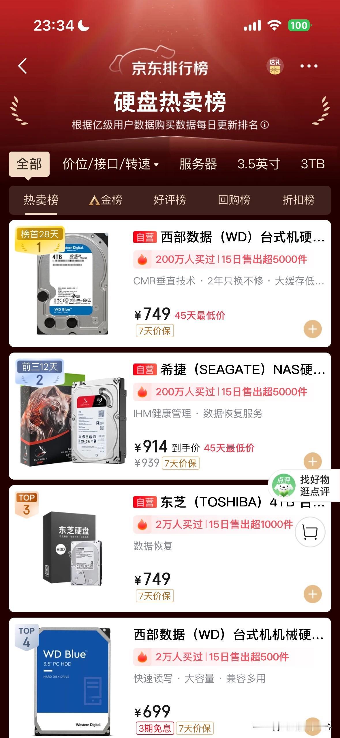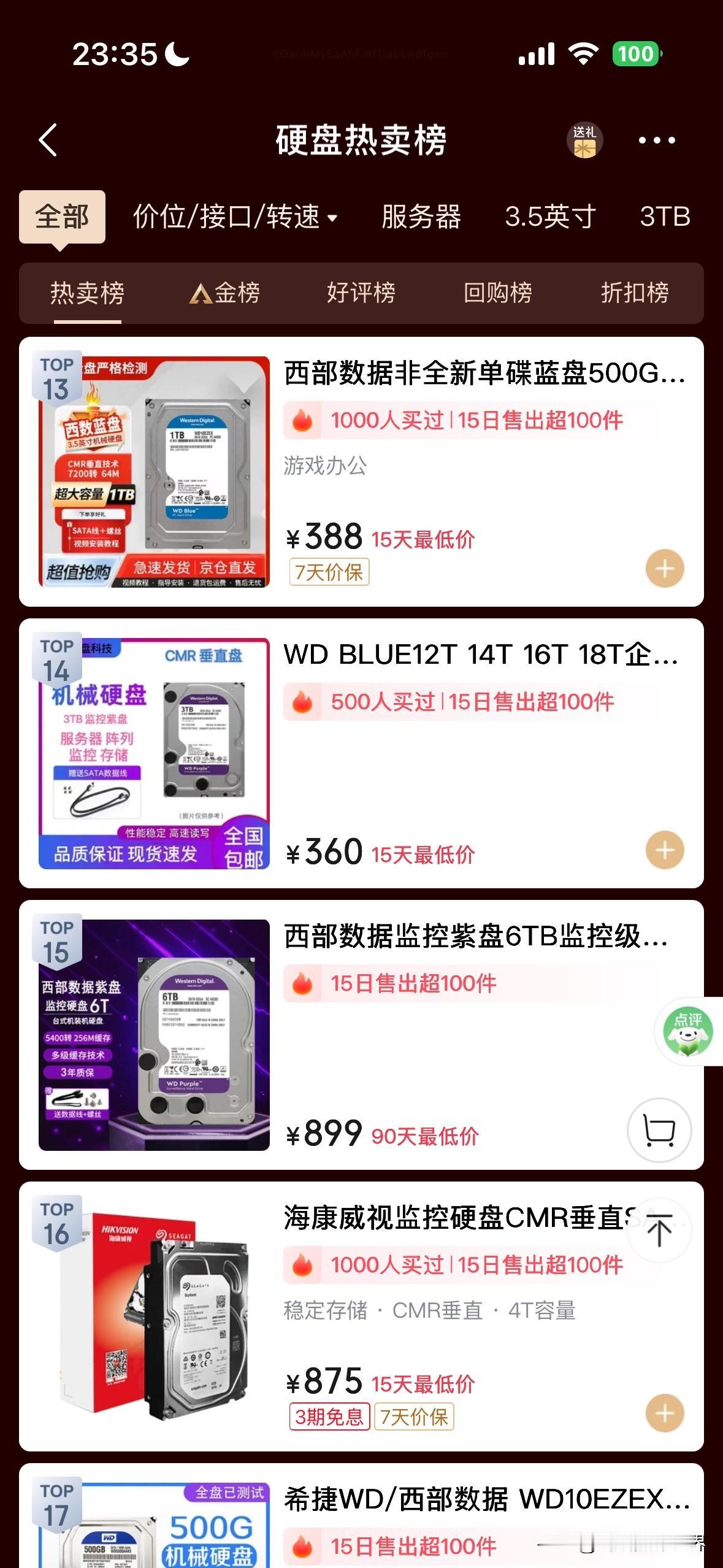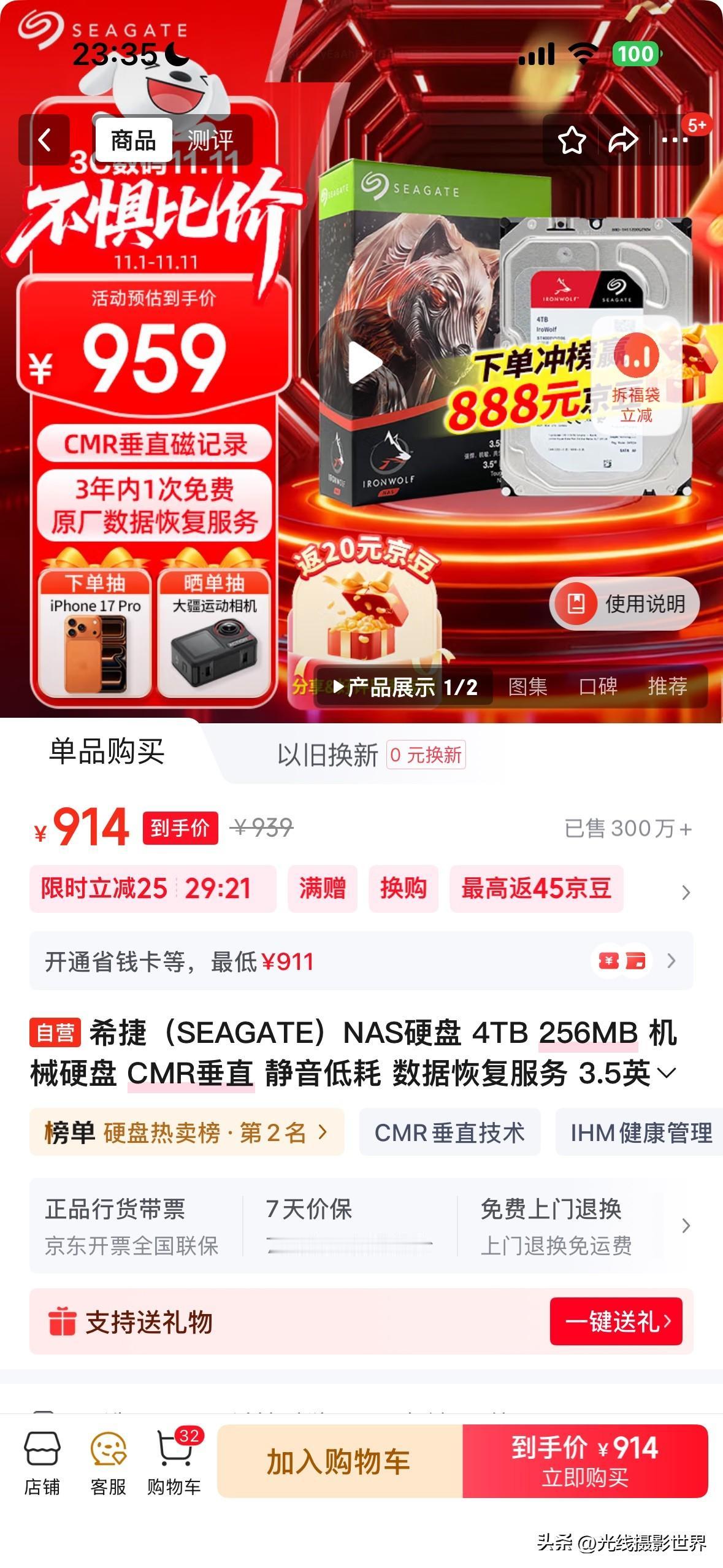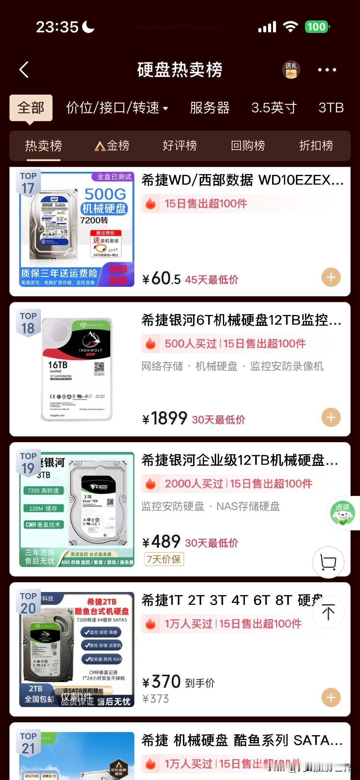 哎!因为这该死的AI人工智能,3.5英寸机械硬盘,最近真的太贵了啊!也是因为涨价,所以……2025年11月11日晚上的京东的硬盘销量排行榜……惨不忍睹啊!销量冠军的西部数据4TB硬盘,15天才售出5000多个……我的个天啊! 好吧,据说,内存,固态硬盘,闪存,高端机械硬盘……可能会一直紧张到2026年年底甚至2027年! 好吧,2026年,大家少拍点照片和视频……慎重一点按下快门或者录制按键! 我估计,想要买16TB或者更大的NAS或者企业级别高端机械硬盘的小伙伴们,要耐心等到2027年啦!光线摄影世界曾兰谈天说地