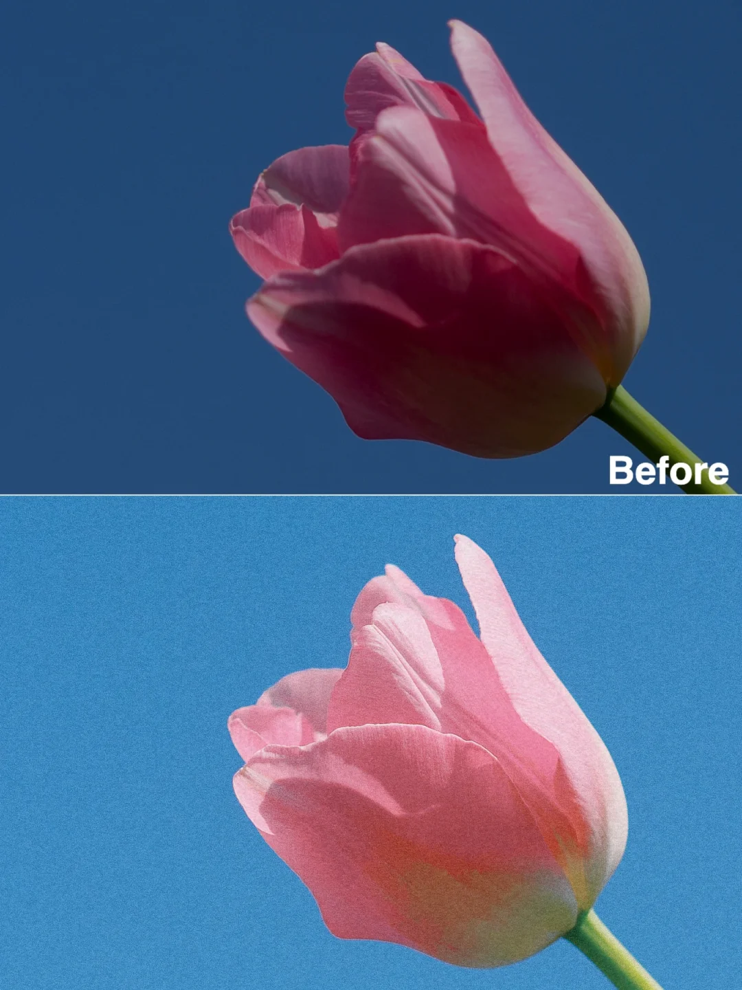 ✨今天分享一下日系蓝粉胶片感滤镜~突然好想做一期胶片感的滤镜!这次把过年的时候拍的郁金香来调整一下!加多点噪点,胶片感就出来啦 . 💻后期教程 修图:黄油🧈 📷滤镜:cp200 📷曝光+59 📷对比度-17 📷饱和度+15 📷锐化+100 📷色温-19 📷色调-14 📷高光+35 . 调色完成后,到发布页面,点击图片旁边「+」号,可以再次导入图片,就可以一键调色哦!📷 . 手机调色|调色教程|黄油滤镜调色|调色软件 | 滤镜调色教程| 拯救废片 | 手机拍照 | 手机摄影 我们下一期再见!🤍