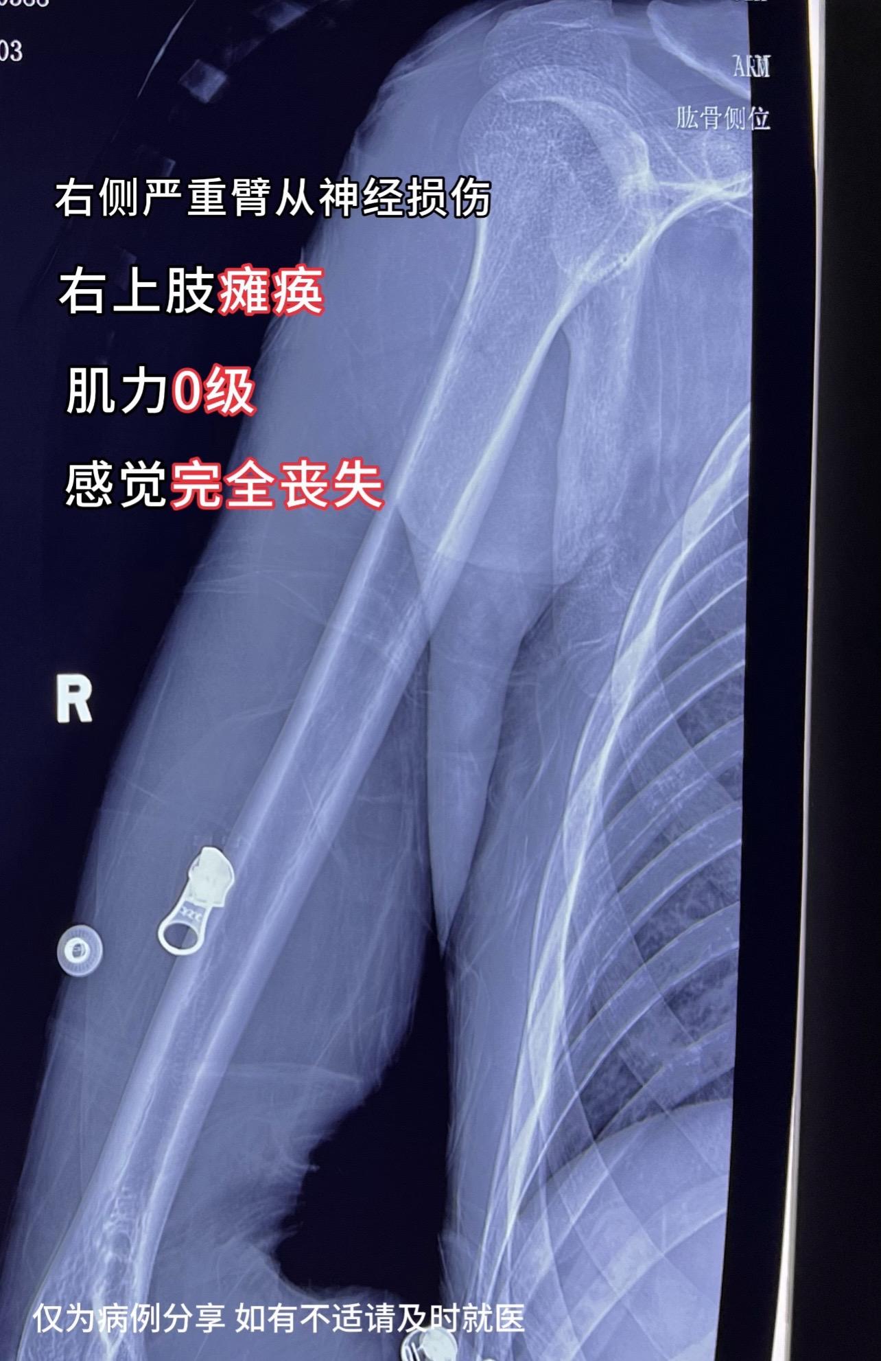 门诊碰到一18岁小伙子,骑摩托车受伤,右侧严重臂从神经损伤,右上肢瘫痪...