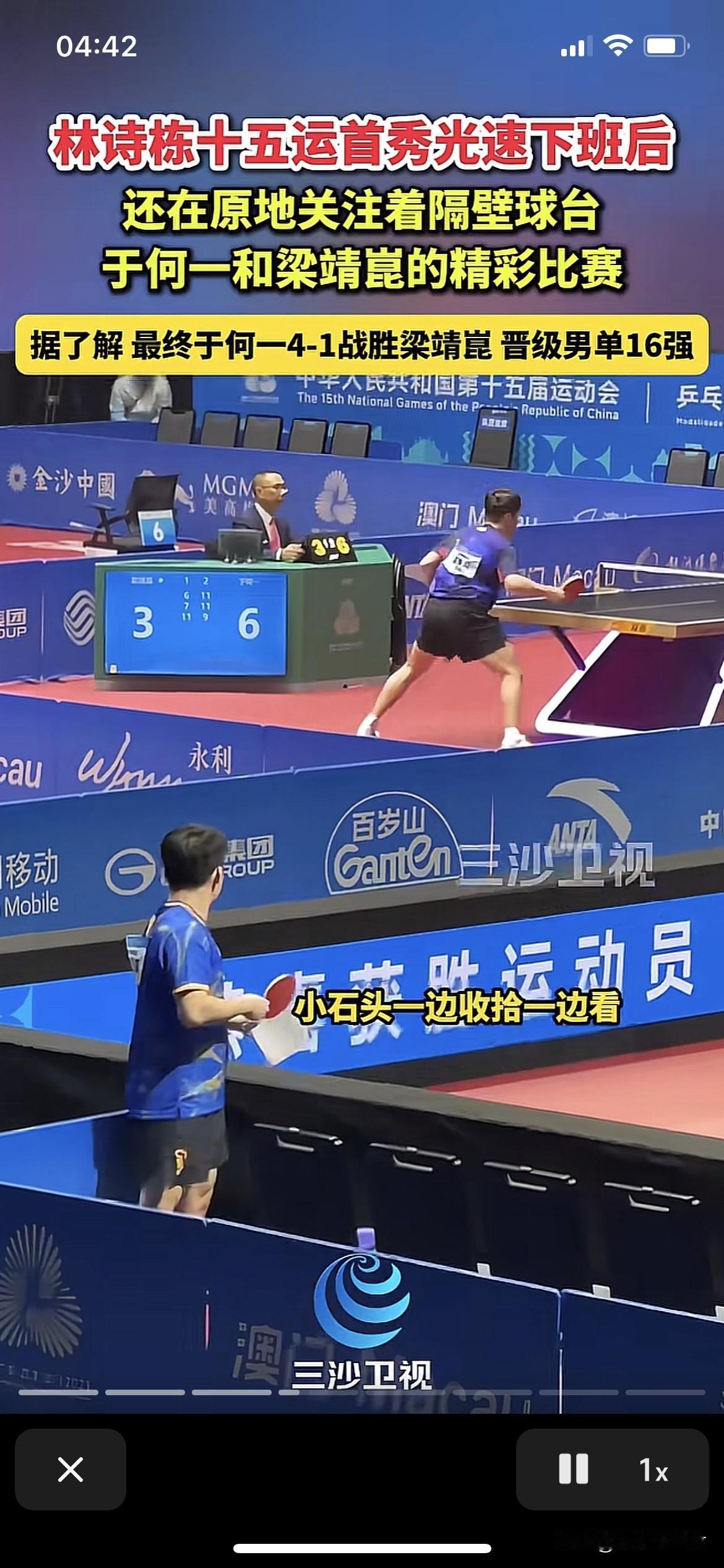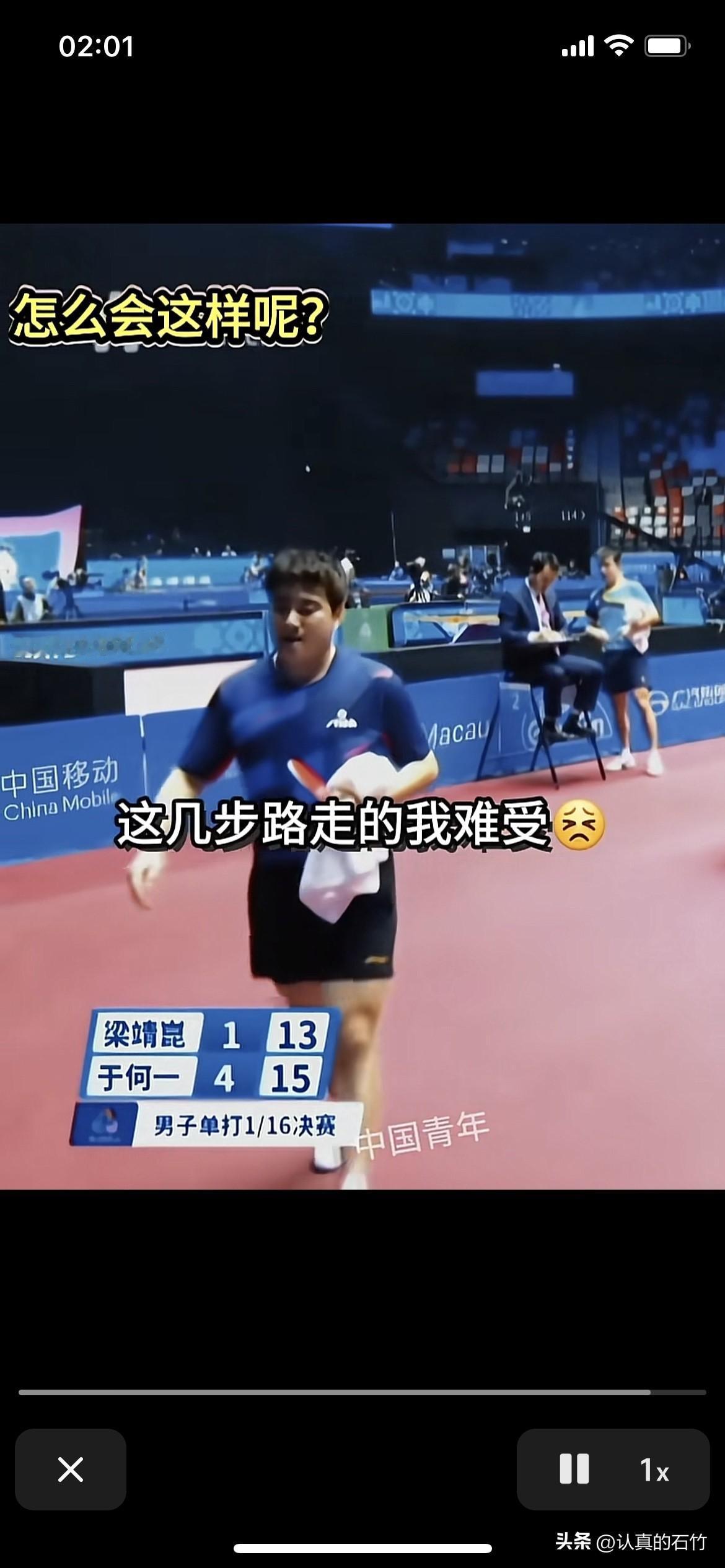 林诗栋能不能扛住于何一的正手猛攻 全运会男单1/16决赛 于何一4:1战胜梁靖崑 看了比赛并不觉得梁靖崑打的不好。大胖打的挺好,大胖发挥正常。奈何于何一正手进攻太猛了。而且于何一2000年出生。当打之年啊! 于何一打球,不仅稳,打起来还挺凶的,我觉得算是很有实力的呀! 于何一如果进四强就对阵林诗栋 真担心林诗栋。林诗栋对正手进攻凶猛的选手落下风。比如莫雷加德,小布,王楚钦,樊振东。 于何一以前也是国家队很厉害的,但是他那个时候国家队天才太多了马龙、樊振东、许昕。所以没什么冲劲有点摸鱼。搁现在这个时代也是绝对主力了。 今晚比赛看的我急死了,但是还是没有出现让二追四的场面[流泪]。甜甜好好休息,把成都混合团体世界杯打好。