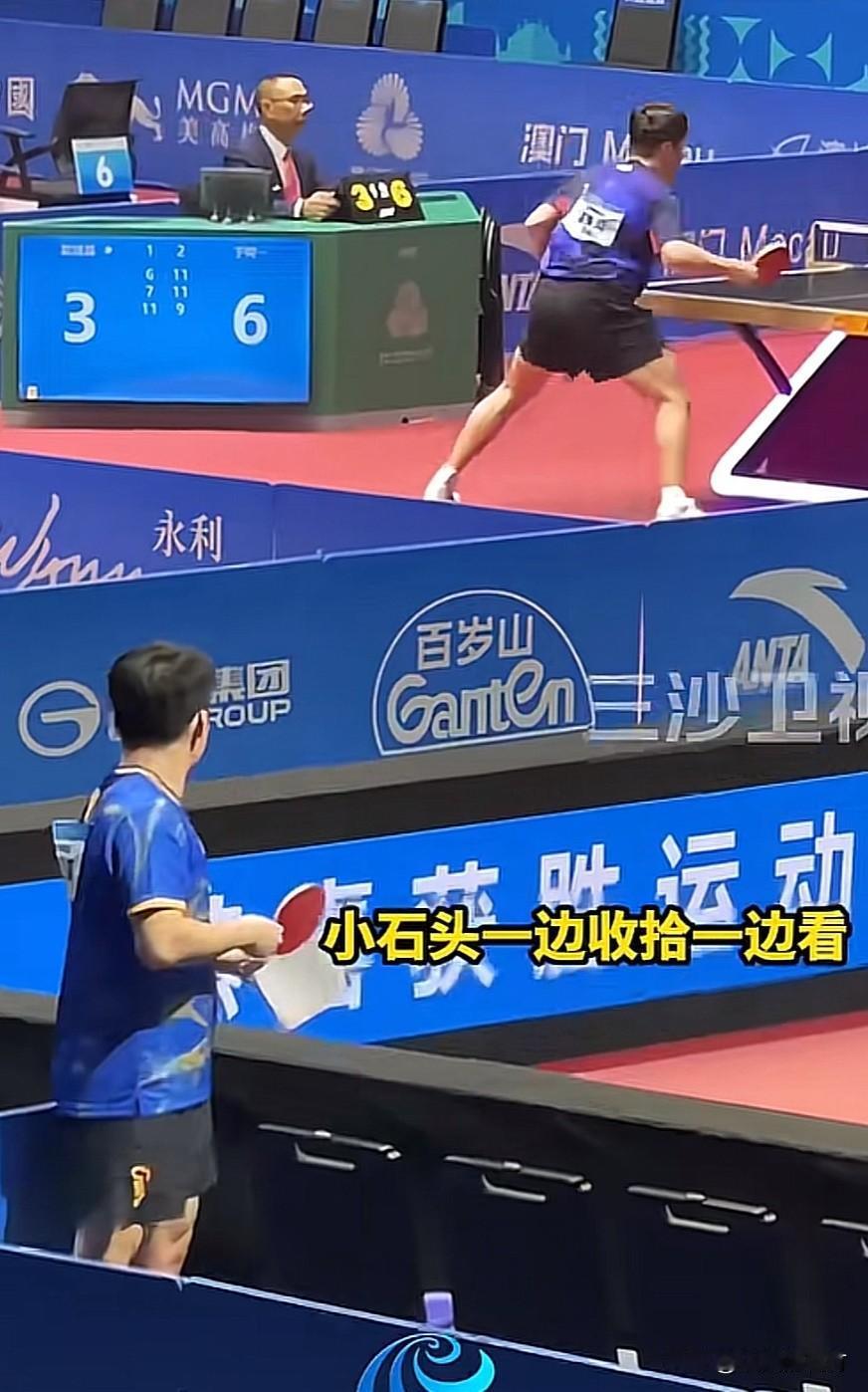 林诗栋看梁靖崑和于何一的精彩比赛。全运会林诗栋4:0战胜孙闻。比赛结束后。隔壁梁靖崑对阵于何一正激烈的比赛。小石头林诗栋边收拾东西边看比赛。林诗栋教练也和林诗栋一起看了一会儿,教练走了林诗栋还在看。哈哈哈,小石头球拍半天都没装进去。看的入迷。 没有想到于何一的正手原来这么猛! 于何一以后可能对上林诗栋。于何一和林诗栋一个半区。林诗栋这个半区 向鹏、徐瑛彬、梁靖崑都一轮游了。 只能说林诗栋半区黑马比较多。