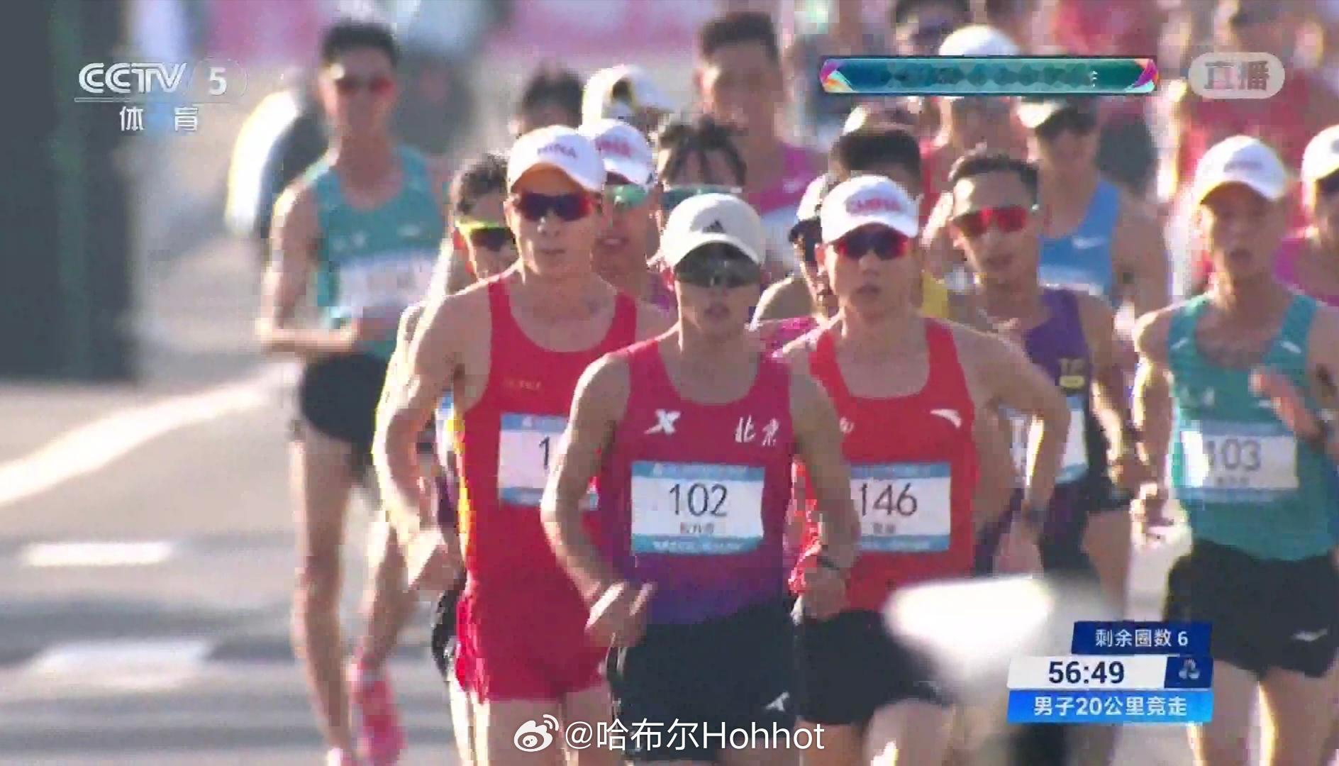 男子20公里竞走,还剩5公里,石升吉、张俊、钱海峰三人暂列前三名。大部队没散都蓄