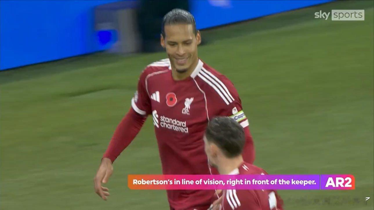 裁判公司公布判罚范迪克越位录音讨论范迪克进球无效一事:— VAR助理:“罗伯逊明显越位了……他有明显的移动动作,影响了守门员。”— 迈克尔·奥利弗(VAR 裁判):“你好,我是奥利弗……我确认判罚:罗伯逊越位。他非常接近守门员,并在对方面前做出了明显的动作!"