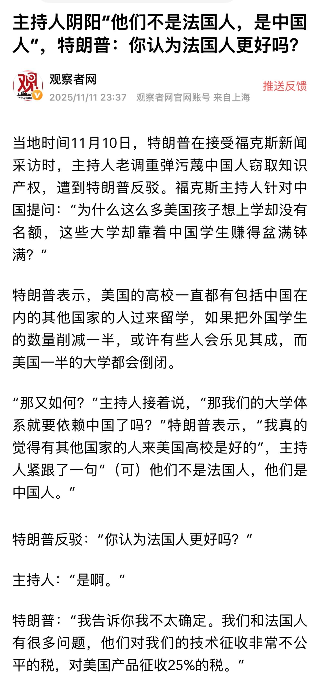 这场对话不仅深刻揭示了“美国优先”理念与高等教育全球化之间的内在矛盾,更暴露了美国政治叙事中对中国的固有偏见。
