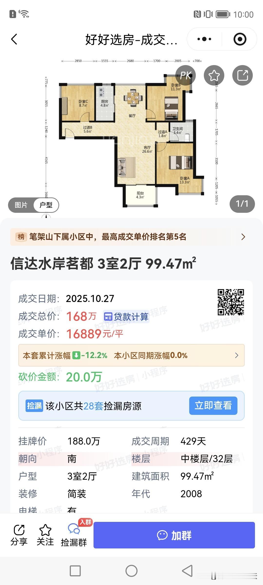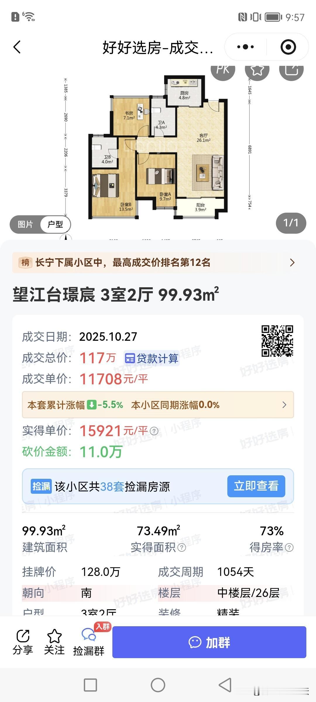 今天更新的成交的几个热门小区的二手房。 高新区的龙湖光年小高层单价两万三,这个价格可以吧,这个价格的确也值得当年请假排队摇号。望江台单价一万一,没咋亏,就亏点利息。政务区的信达水岸茗都单价一万六千多,住天鹅湖附近现在比住外围还要压力小些。