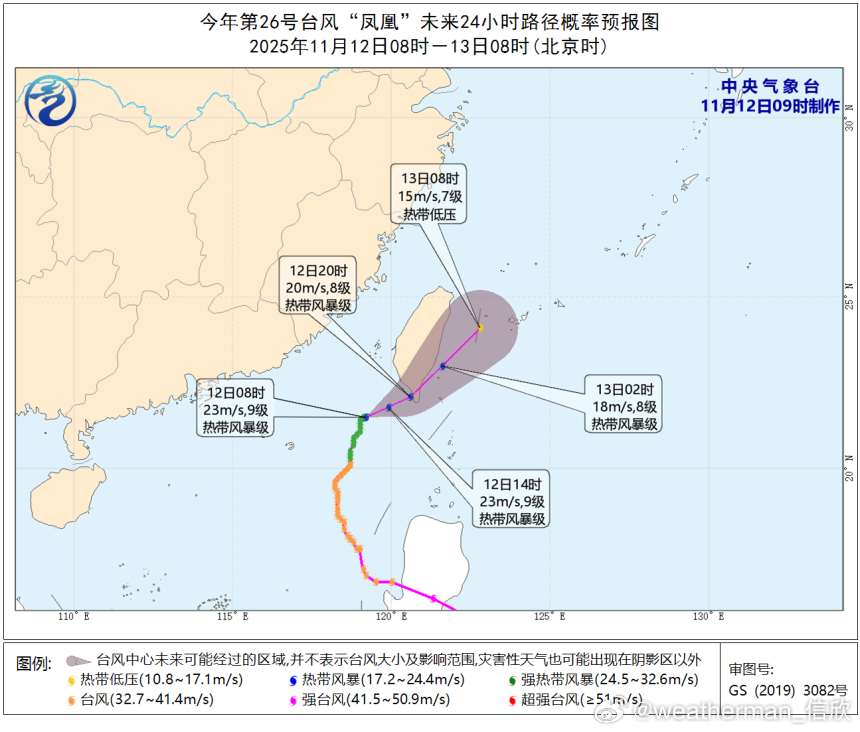 昨天到今晨,因为台风凤凰和冷空气的影响,浙江福建降雨增强,台湾东部强降雨持续,台湾东北部多地出现特大暴雨。台湾宜兰县冬山656毫米(特大暴雨)、浙江洞头60.5毫米(暴雨)、福建南平38毫米(大雨),为各自省份最强降雨。从9日20时-12日08时,台湾宜兰县的东澳岭1079毫米、冬山955毫米、西帽山874毫米,排名前三。从云图看,凤凰的对流和低空环流中心已经分离,说明垂直风切变加大,今天台风凤凰强度减弱,总体降水强度也减弱。今天8时,凤凰已经减弱为热带风暴级,未来强度继续减弱。今天傍晚到夜间,可能在台湾岛南部沿海登陆(热带风暴级,8-9级,20-23米/秒),也有可能从台湾南部近海擦过。尔后随着冷空气注入,明天可能变性为温带气旋。受到台风凤凰和冷空气影响,12日08时到13日08时,浙江东部、台湾岛北部和南部将有大到暴雨(50-80毫米)。东海大部海域、台湾海峡、台湾以东洋面、巴士海峡、南海东北部海域,浙江沿海、福建沿海、广东沿海、台湾岛沿海将有6-8级、阵风9-10级的大风,其中,东海西南部、台湾海峡、南海东北部海域、台湾岛西南部沿海的风力可达9-10级,阵风11-12级。