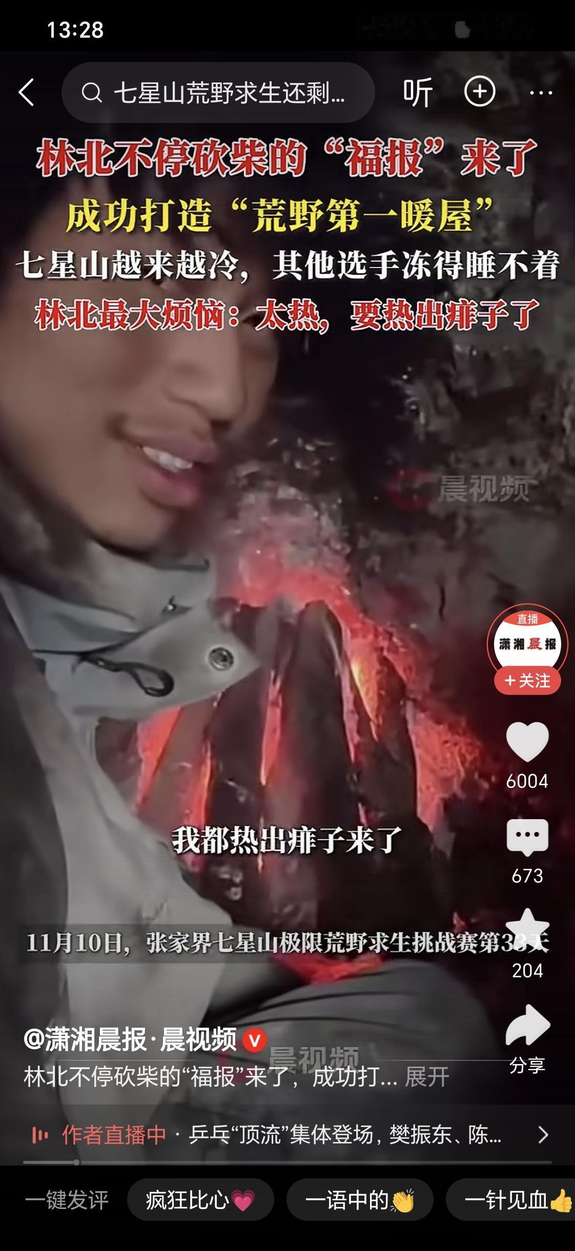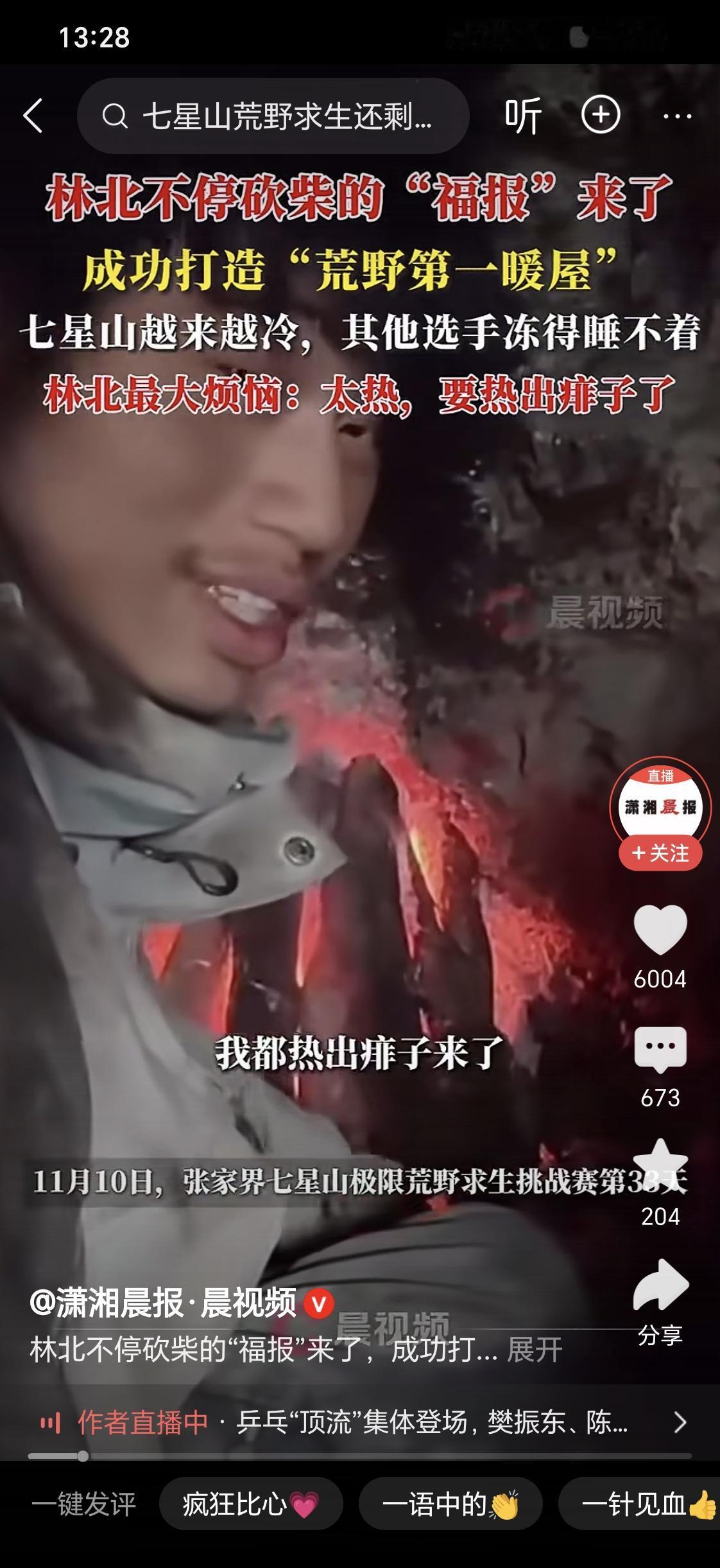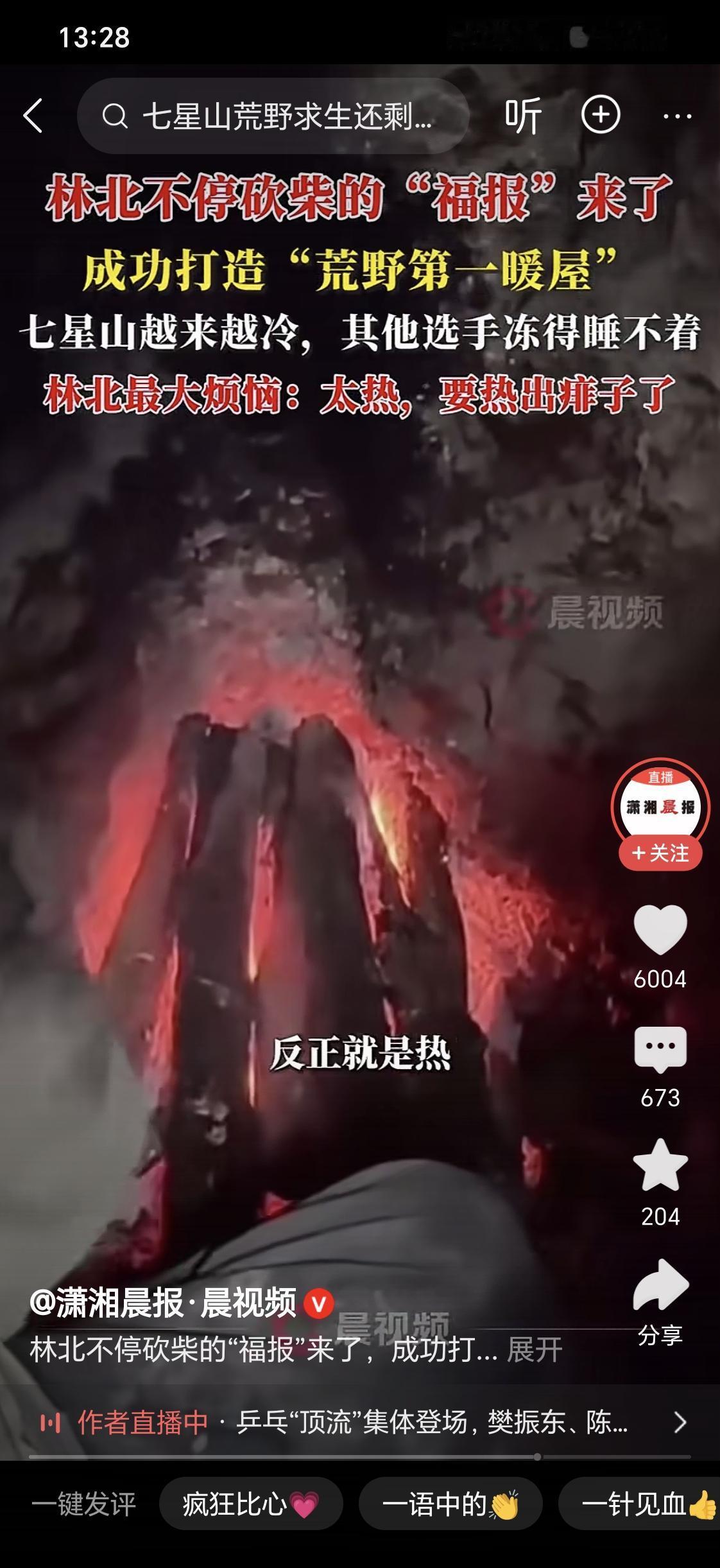 荒野求生林北打造第一暖屋。[笑哭][笑哭]开局一把刀,拼命砍柴。堆柴,烧炕,快把自己烤成红薯了。 大冷天里,他是唯一一个大喊,热死了的人[呲牙]。 夜里林北睡不着,把我乐得。[呲牙][呲牙] 一会身体烫,对应一会头烫,一会脚烫,一会手烫一会这一会那,就是热得快出痱子了[笑哭]。 大冷天里的唯一热战士![呲牙] 看他烧的那个土坑真的红通通的[大笑][大笑][大笑],像不像东北的大坑??? 有种老婆孩子热炕头的错觉了[呲牙][呲牙][呲牙]。丛林荒野求生 通道荒野求生 荒野野求生 北盘江荒野求生 林北 西部荒野求生