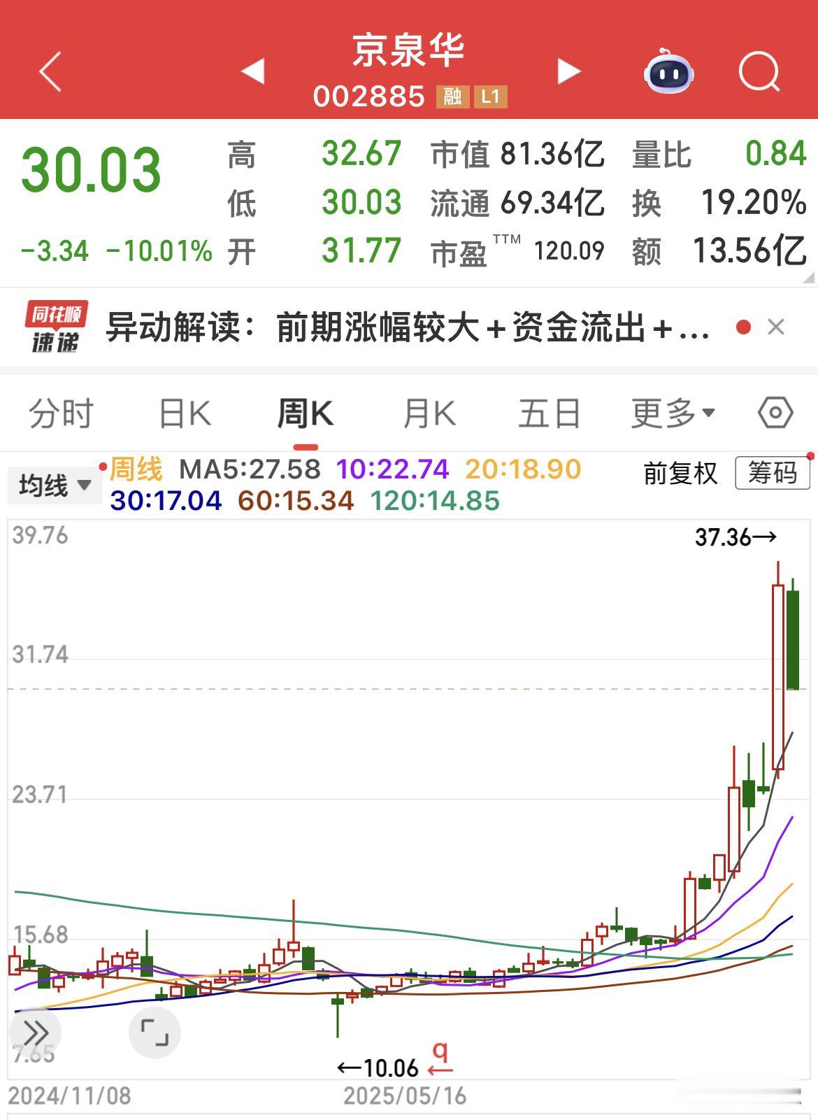 京泉华跌停原因:前一段大股东减持+近期涨两三倍了+市盈率120倍。