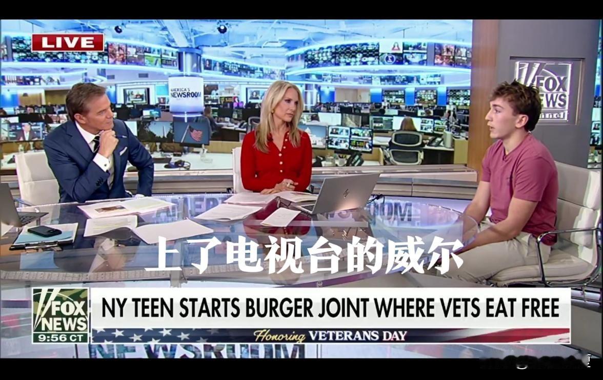 天下真有免费午餐,美国国会不愿意付的,富家小哥主动来付。 美军发不起工资,美军士兵没钱吃饭——于是纽约18岁的威尔·伯雷尔(Will Burrell)开设了一家为美国老兵提供免费汉堡的小店,而他还将所得收益捐赠的美国失去退休金的老兵。 他的曾祖父曾参加过第二次世界大战,现家中富庶,也愿尽微薄之力。目前美国老兵不少比例没有房子,工资被断供,也没有医疗保障,生活困苦。