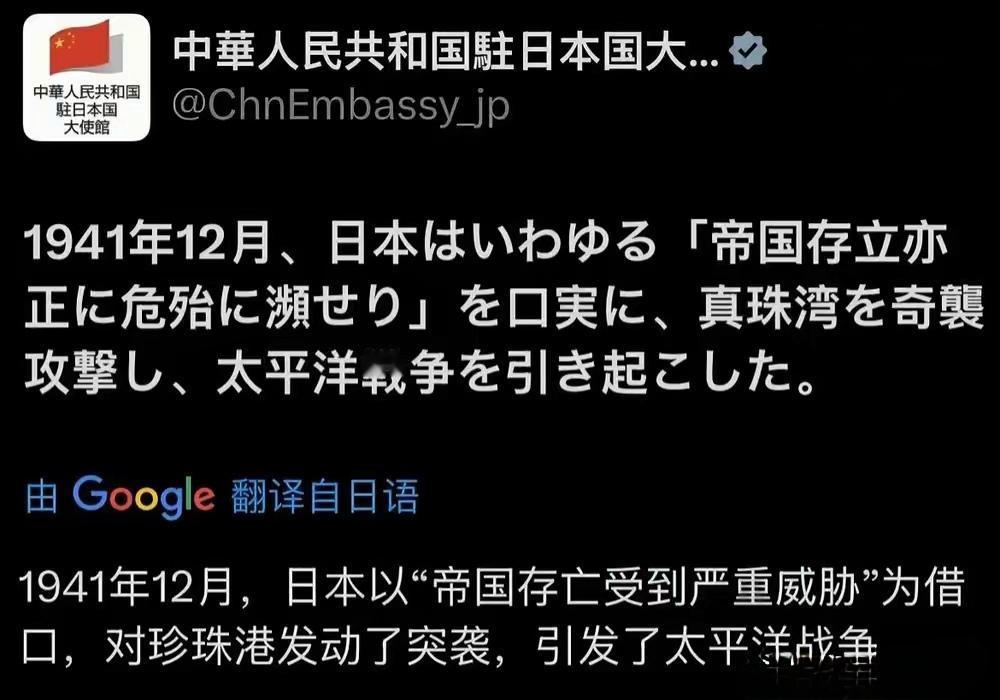 我驻日使馆又发话了,说日本当年用“国家存亡危机”借口偷袭了珍珠港。言外之意,“国家存亡危机”是日本惯用的借口,过去,日本用这个借口发动对华侵略,偷袭珍珠港,今天,高市早苗用这个借口,扬言“台湾有事,日本武力介入”,这就是日本军国主义复燃的信号,所有被日本侵略过、攻击过的国家都应该提高警惕,美国也不例外。 日本战略外交 日本外交 日本对华外交 日本军事挑衅 盟军占领日本 日本对华情报战 日本泄漏 珍珠港袭击事件 日本开战 冲绳危机 珍珠港计划 冲绳安全危机 珍珠港遗址 珍珠港旅游 珍珠港大反转