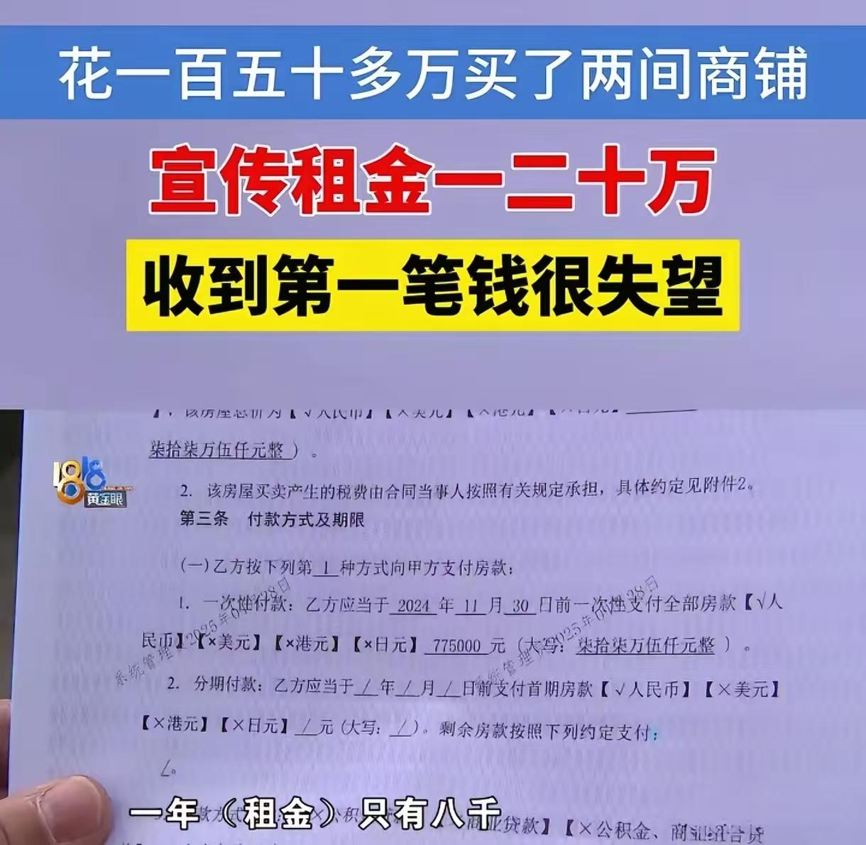 女子看中年入10多万买商铺,半年到手几千,想解除合同对方人去楼空。 浙江嘉善,女子看到有人推广商铺,一间25平的商铺一年租金有14万元,她花155万买了2个铺子。 8个月后,她收到了第一笔租金,其中一间商铺半年多的租金是4700元,另一间铺子是6100元,一年下来也就2万多的租金。 女子觉得这跟对方介绍的收益差的太多了,想把商铺给退了,可对方早已人去楼空,销售也联系不上了。 古女士偶然得知,当地有商铺正在推广,宣传中称一间25平方米左右的商铺,年租金收益可达14万元左右,这样的回报让她十分动心。 她特意约上朋友,一起从上海前往嘉善实地了解情况。到达现场后,销售人员十分热情地接待了他们。 销售说,类似面积的商铺每年租金收益在14万元上下, 而且,会有专门的管理公司统一负责租赁,业主无需自行打理,只需坐等收钱就行。 古女士实地查看的两间商铺中,她注意到,铺位已经与周边其他商铺合并成为两家餐饮店的经营空间。 销售人员当时承诺,商铺的产权交易,不会对现有的租赁关系产生任何影响。 随后在2024年11月12日,古女士随销售人员,来到商场五楼的一间办公室,进行价格商谈。 在沟通过程中,对方出示了某置业公司的营业执照副本,使她误以为销售人员是开发商旗下的正式员工。 经过协商,双方最终签订了商铺买卖合同,与委托管理协议。 古女士购买的两个商铺,面积分别为26.9点平方米,和25.98平方米,单价均为77.5元,总价合计155万元。 这两份合同均属于三方协议:卖方为孙先生,买方是古女士,此外还涉及一家中介公司。 销售人员解释称,孙先生是公司副总,作为商铺的代持人参与交易。 尽管在整个过程中,这位女士与孙先生几乎没有交流,仅曾在过户大厅有过一面之缘,但她当时并未对此产生疑虑。 在签订托管合同时,管理公司的人员并未到场,相关文件均由销售人员带来并让她签署。 这份委托管理协议约定的托管期,从2024年11月23日起至2026年5月31日止,但合同中并未明确标注具体的租金金额。 不过,销售人员曾向她出示过,其他租户与管理公司签订的租赁协议,显示相似面积商铺的年租金确实达到十四、五万元,这让她感到放心。 根据协议约定,她需要将租金的百分之十,作为管理费支付给管理公司。 每年一月底结算上年七月至十二月的收益,每年七月底前支付当年一月至六月的租金。 2025年7月29日,她收到了管理公司转来的两笔租金。 然而看到金额时,她感到十分震惊:其中一间商铺半年多的租金仅为4752元,另一间为6110元。 也就是说,两间商铺全年租金收入仅2万多元,与销售人员当初承诺的收益,相差的可不是一星半点。 其实早在2025年3月,她已察觉到一些异常。 当时因需要更改邮寄地址,她试图联系对方发送租金收益单据,但始终未获回复。 当她再次前往五楼办公室时,发现大门紧锁,室内空无一人,销售人员的电话也一直无法接通。 古女士越想越气愤,认为对方是以高收益作为诱饵,误导她购买商铺。 古女士表示,如果当初对方明确告知,年租金只有8000元左右,她绝不会买这样的铺子,而且还一买就是两间。 如今这两间商铺,如同烫手山芋,古女士希望能解除合同。 在多方联系无果的情况下,她最终向媒体求助。 记者根据合同地址前往调查,发现原办公地点早已人去楼空。 记者联系之前的业务员,对方表示,已从中介公司离职,且否认负责过古女士的业务。 记者又向街道办咨询,工作人员称已联系过开发商,对方表示,早在2018年售完商铺后,就已撤离现场。 面对这样的局面,古女士既愤怒又无奈,表示将向属地司法所寻求帮助。 那么从法律角度来看,这起事件涉及哪些问题? 《民法典》第一百四十八条:一方以欺诈手段,使对方在违背真实意思的情况下实施的民事法律行为,受欺诈方有权请求法院或者仲裁机构予以撤销。 销售人员故意告知古女士虚假的租金收益情况,让古女士以为买了商铺,能有很高的租金收入,才决定花155万买了两个铺子。 但实际租金与承诺的相差巨大,古女士作为受欺诈方,是有权请求法院或仲裁机构撤销合同的。 《民法典》第500条:当事人在订立合同过程中有下列情形之一,造成对方损失的,应当承担赔偿责任: (二)故意隐瞒与订立合同有关的重要事实或者提供虚假情况; (三)有其他违背诚实信用原则的行为。 意思是在签合同的时候,如果有人故意隐瞒重要信息,或者提供假信息,给对方造成了损失,那就要承担赔偿责任。 本案中,销售人员在介绍商铺时,只给古女士看了高租金收益的租赁协议,却没有告知她,实际可能存在的低租金风险等重要事实。 导致古女士基于错误的信息签订了合同,遭受了经济损失,按照这条法律规定,相关责任方,是应该对古女士的损失承担赔偿责任的。 对此你怎么看?