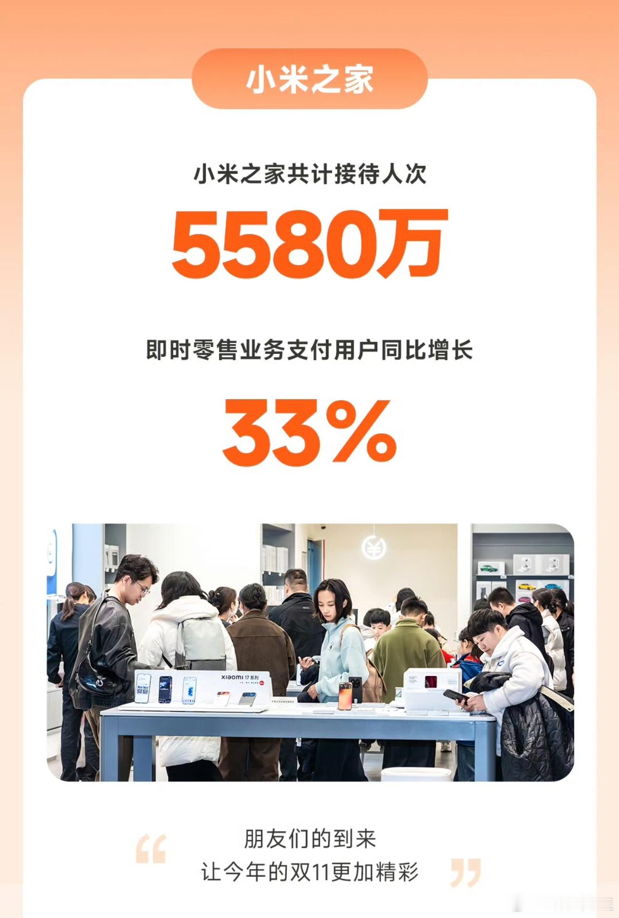 双11期间,小米之家共接待5580万人次。