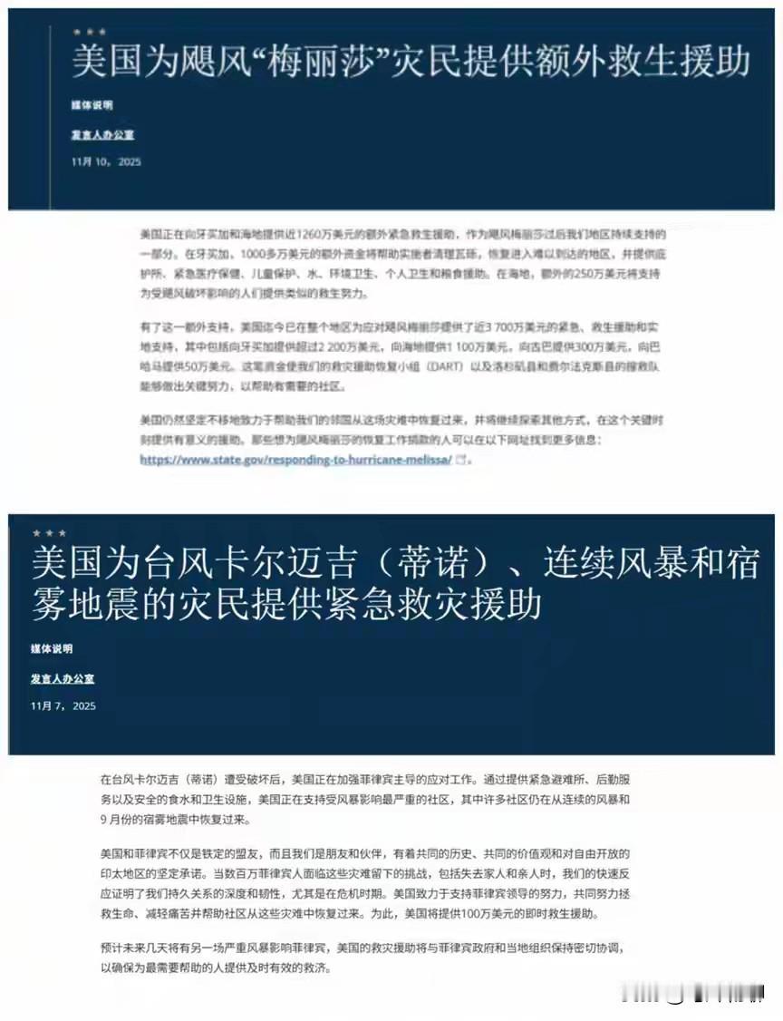 想想还真是讽刺。或许在菲律宾总统马科斯心中,美国才是他最坚实的靠山,既能提供援助提振本国经济,又能作为强硬后盾威慑中国,这根“大腿”必须得抱牢了。可现实往往不遂人愿,所谓的“盟友情谊”,不过是他的一厢情愿罢了。 此次菲律宾遭遇台风重创,美国冷眼旁观,没有像盟友般给予及时关切和慰问,只是不痛不痒地送上25万美元援助,仿佛在说“这是我的心意,看看咱们的关系还行吧”。 然而不久后,美国却高调发布援助声明,宣布为牙买加和海地这两个非盟友国家,追加1260万美元紧急救生援助,以应对台风灾害,这援助可是给菲律宾的援助金额的50倍! 这对比也太扎心了吧!对非盟友尚且如此慷慨,对菲律宾这个“自己人”却只给三瓜俩枣草草打发。孰轻孰重,美国的态度早已一目了然。马科斯是时候醒醒了,别再沉溺于自己编织的“美菲特殊关系”的梦里不能自拔。(图片来自网络)菲律宾当前局势 菲律宾现状 三年后菲律宾 马科斯外交 菲律宾国际战略 马科斯困境 菲律宾政坛巨震