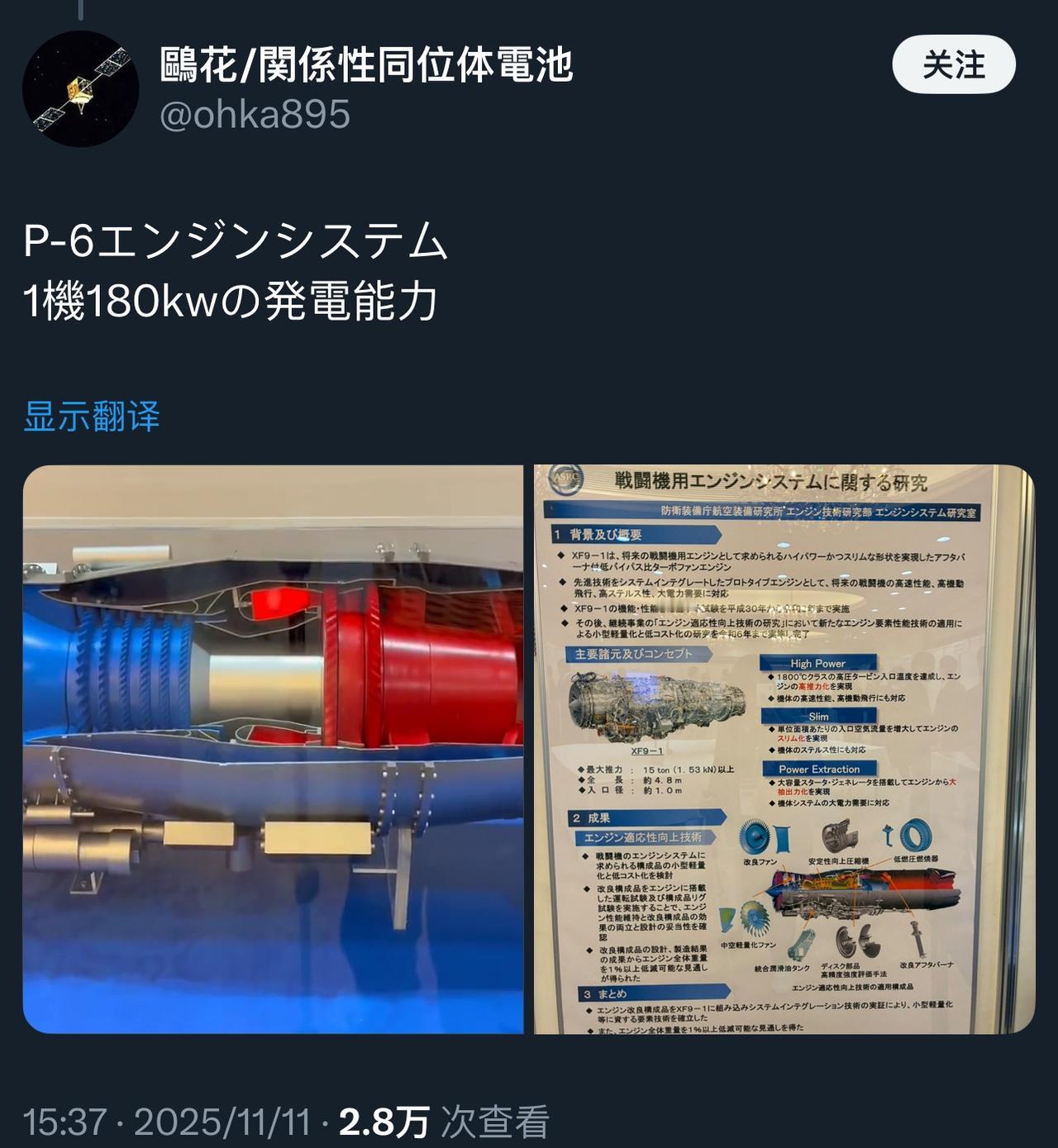 XF9-1,单台(还是整架飞机?)发电量180kW