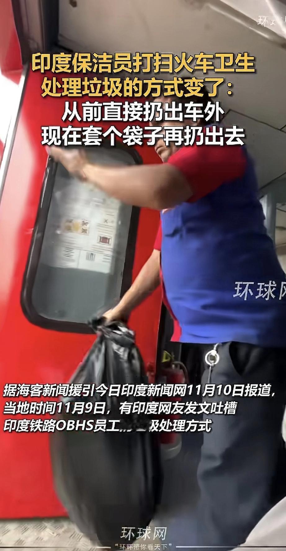 还得是印度呀!——印度火车上的保洁员最近改进了打扫方法:以前直接把垃圾往车外一扔,现在呢,会给垃圾套个袋子再扔出去。 他们还觉得自己这办法挺妥当的,完全没意识到问题根本没解决。就像我们平时说的“换汤不换药”,光给垃圾穿件“衣服”,该污染环境还是污染。 印度的做法永远都是那么的别树一帜,让人觉得不管咋样,在印度发生任何事情都是正常的。
