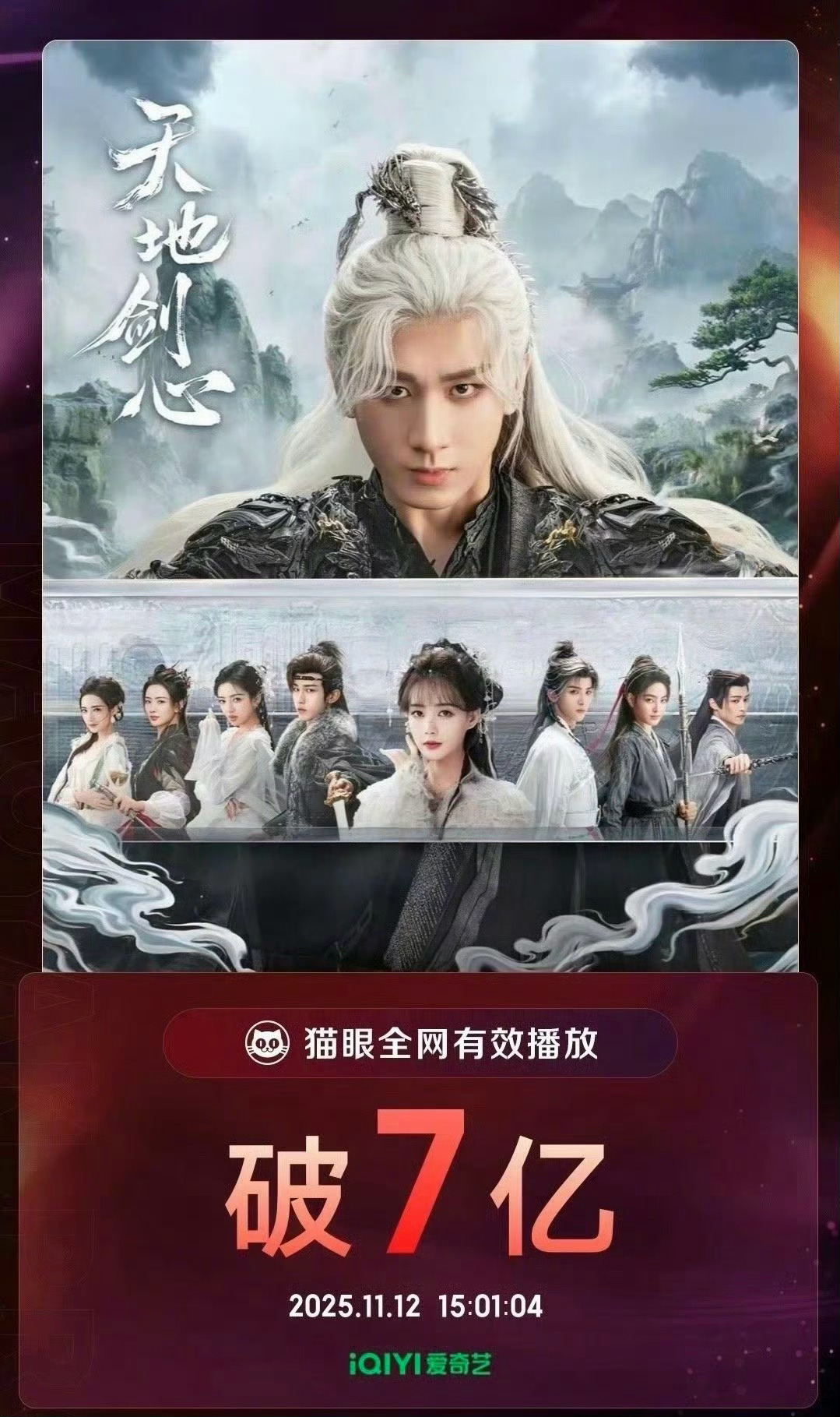 成毅李一桐的《天地剑心》全网有效播放破 7 亿,什么水平?