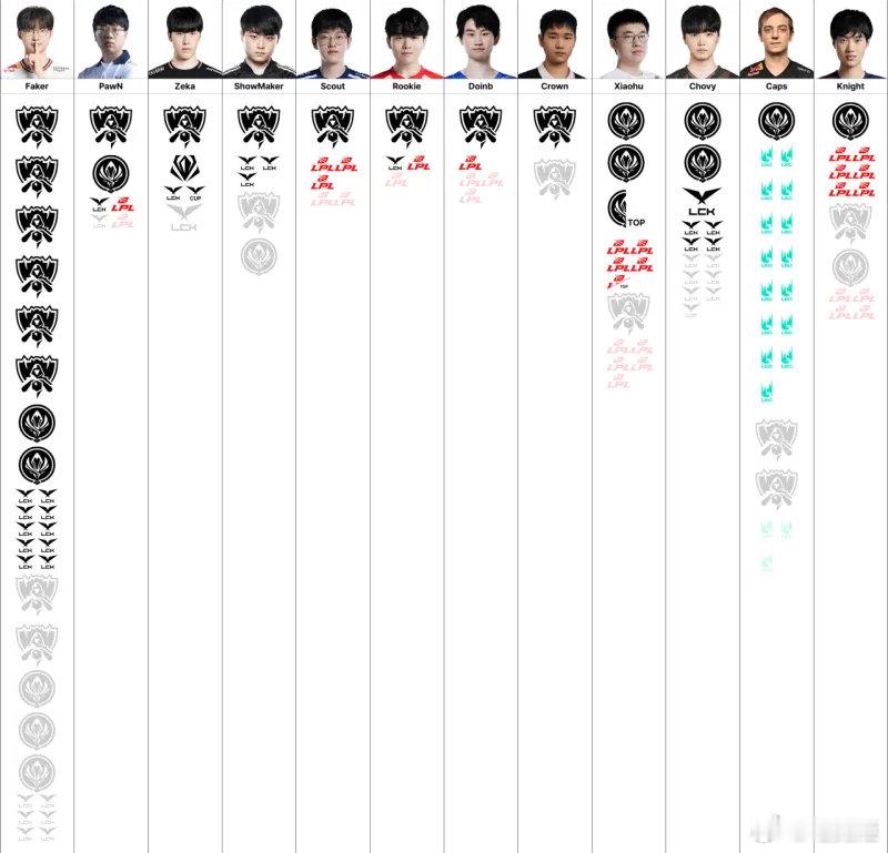 网友盘点各位置最新选手荣誉 奖杯图(冠亚军)跟去年变化不大的样子,但是兰子一跃晋升为历史级上单了。