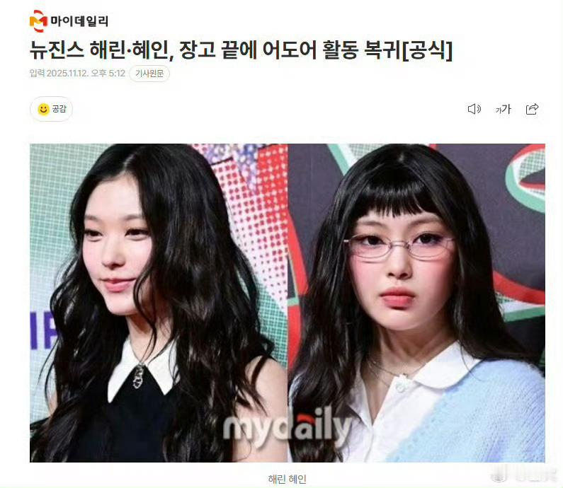哦么!ador发公告:NewJeans的李惠仁HYEIN和姜海粼Haerin将回到ADOR继续活动....... 所以闹了一圈.......姐几个是分道扬镳还是全都回来?