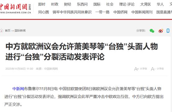 我外交官“斩首”2字,把欧洲议会吓得不轻,立马与“台独”切割    2025年11月7日的布鲁塞尔,欧洲议会大楼里正上演着一场精心策划的政治闹剧。反华组织IPAC把年度年会开在了这里,民进党当局副领导人萧美琴穿着一身笔挺的西装,高调站在演讲台上,面对台下百余位欧洲议员,公然扯起了“台独”的幌子。   “台湾是民主国家”这句话从她嘴里蹦出来的时候,台下几个长期炒作涉华议题的政客还跟着鼓掌,英国保守党前党魁伊恩·邓肯·史密斯甚至频频点头,活像是在给这场闹剧捧场。   萧美琴在台上越说越离谱,一会儿把大陆的主权维护行动污蔑成“军事胁迫”,一会儿又抛出“2030年防务预算提升至GDP5%”的激进主张,还拼命把台湾问题往欧洲安全上绑,说什么“台海有事欧洲也会受影响”。   明眼人都看得出来,这就是台当局拿“金元外交”砸出来的表演——IPAC这种受美国基金会资助的反华组织,早就和民进党勾连在一起,2024年还跑去台北开年会,这次不过是把“台独”舞台搬到了欧盟的核心地带。   和萧美琴一起参会的林佳龙在台下帮腔,两人一唱一和,无非是想制造“一中一台”的假象,给岛内选举刷存在感。   可他们没料到,这场闹剧刚开场,中方的反击就到了。11月8日一大早,中国驻欧盟使团的声明直接把话说死,连用四个“严重”定性这事:严重损害中方核心利益、严重违反一个中国原则、严重干涉中国内政、严重冲击中欧政治互信。   发言人说得明明白白,台湾问题是“红线中的红线”,中方已经提出严正交涉,要求欧方立刻消除恶劣影响。这还不算完,就在同一天,中国驻大阪总领事薛剑在社交平台上发的帖子更让整个东亚政坛震动——面对日本首相高市早苗“台海有事日本出兵”的狂言,他直接甩出了“斩首”两个字,质问对方“你有觉悟吗?”。   虽然帖子后来被删除,但这两个字的分量,早就透过网络传到了布鲁塞尔。 欧洲政客哪见过这阵仗?要是换了高市早苗那种初生牛犊,或许还会硬扛几句,但这些常年和中国打交道的欧洲人,太清楚中国的脾气了。   平时中方说话都留着余地,可一旦动真格,从来不是光动嘴皮子。2025年10月德国外长就因为涉台说错一句话,访华直接被推迟,解放军的轰-6轰炸机编队当天就去台海搞了实战化演训。   更早之前,捷克参议长窜台拿了台当局的好处费,中方转头就扩大了和捷克其他地区的合作,让这位政客成了孤家寡人。现在薛剑的“斩首”警告虽然是对着日本说的,但明摆着是给所有打台湾主意的势力敲警钟:碰红线的后果,你们承受不起。   欧洲议会的反应快得像踩了电门。11月10日外交部记者会上,欧方赶紧放出话来:“欧洲议会坚持一个中国政策的立场没有也不会改变”,还特意撇清关系,说IPAC的会议根本没得到议会邀请,领导层也没和萧美琴有任何接触,“个别议员的个人行为不代表官方立场”。   这话说得有多刻意?等于直接把IPAC和萧美琴推了出去,意思是“这事儿跟我们没关系,是他们自己瞎折腾”。要知道几天前还放任人家在自己大楼里开年会,现在一看中方动了真怒,立马就翻脸切割,吃相着实有点难看。 其实欧洲议会的小算盘打得精着呢。   他们心里比谁都清楚,IPAC就是个拿了钱办事的“反华黑手套”,2020年成立以来除了炒作涉台、涉疆议题,没干过一件正经事。这次允许他们在议会大楼开会,无非是想拿“台湾牌”在中欧稀土出口、经贸摩擦谈判里换点筹码。   可他们忘了,中国手里的牌比他们多得多。欧洲的汽车产业离不开中国的稀土,德国的机械制造、法国的奢侈品更离不开中国市场,真要是因为“台独”势力把中方惹毛了,受损的还是欧洲自己的利益。   之前德国外长刚说错话就被推迟访华,已经给他们提了醒,现在再看到“斩首”这样的强硬警告,哪里还敢赌?更让欧洲政客发怵的是中方的法律和军事双重威慑。   2024年五部门出台的《关于依法惩治“台独”顽固分子分裂国家、煽动分裂国家犯罪的意见》早就划了红线,和境外势力勾连搞分裂的,首要分子最高能判死刑,追诉期还长达20年。   萧美琴这种两次被大陆点名制裁的“台独”头面人物,早就被列在了清单里。军事上更不用说,2024年萧美琴窜访捷克的时候,解放军平均七八天就派十架军机去台海巡航;2025年10月刚有欧洲政客涉台说错话,轰-6编队立马就来了次实战化演训。   这些可不是摆样子,而是实实在在的威慑。反观萧美琴这边,简直成了被抛弃的笑话。她本来想着靠这场演讲给自己捞政治资本,还花了不少台胞的血汗钱搞“金元外交”——之前为了策划佩洛西窜台,光公关费就花了近315万美元,这次给IPAC的“赞助金”更是没少掏。