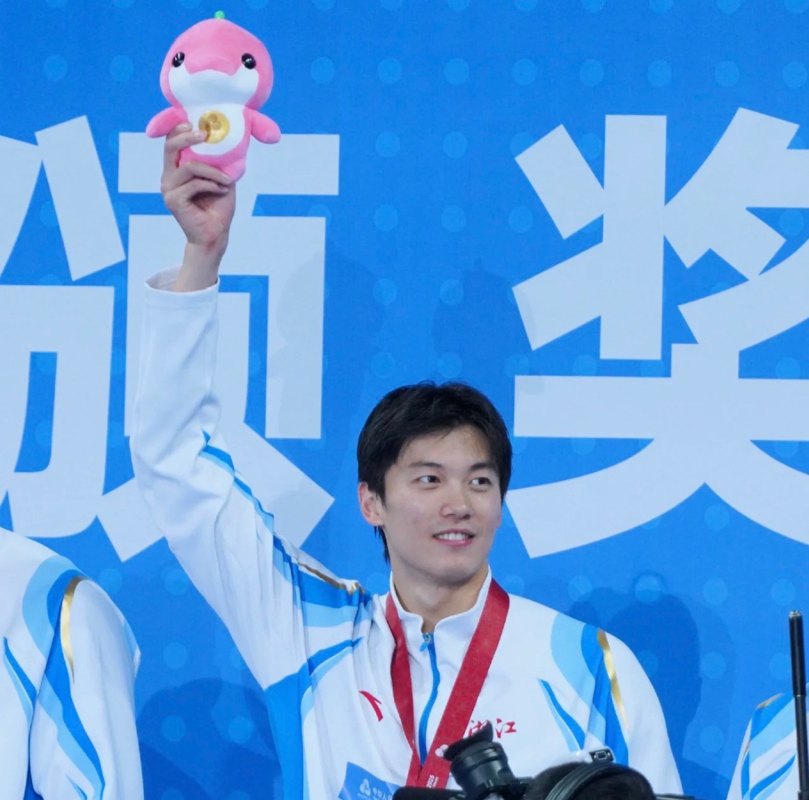 游泳比赛日的第一天汪顺就把自己的记录更新到了第16金,今晚即使是并非主项的仰泳他