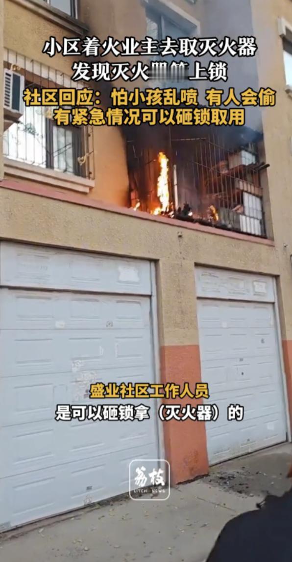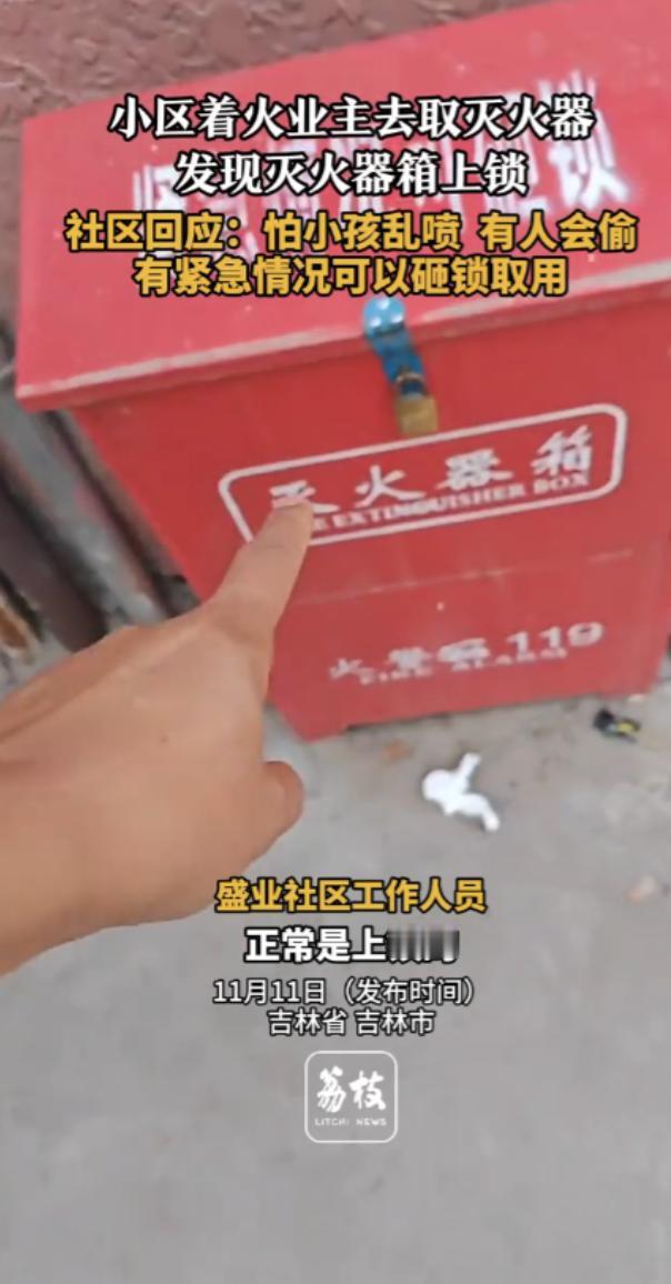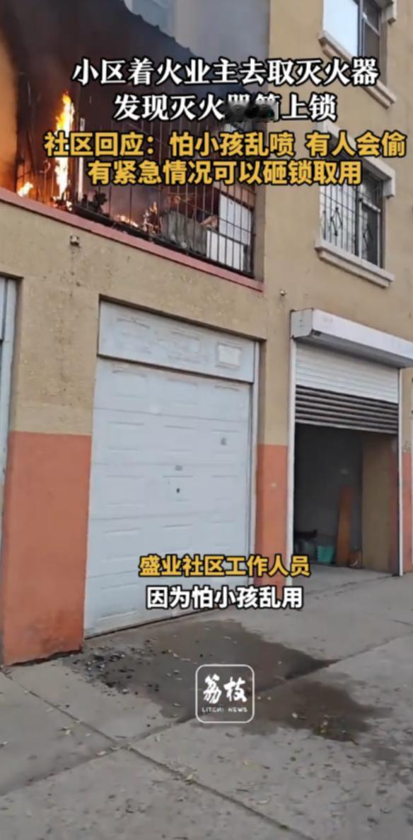 “离了个大谱!”近日,吉林省吉林市,一小区的房屋着火后,居民急忙去拿灭火器,却震惊的发现,灭火器箱子竟然被人锁上了,无奈只能去找其他地方的灭火器用。工作人员:怕小孩子喷着玩,紧急情况可以直接砸锁。 十一月的一天,小区里突然弥漫开一股浓浓的焦糊味,一开始有人以为是谁家做饭不小心糊了锅,没太当回事,可那股味道越来越重,还夹杂着淡淡的烟味,大家这才意识到不对劲。 住在附近的居民纷纷走出家门查看,顺着味道一路找过去,才发现是一楼的一户人家冒出了火苗,烟雾已经开始从窗户缝里往外渗,情况一下子变得紧张起来。 邻里们心里顿时揪紧了,手心都冒出了汗,第一反应就是赶紧找消防器材自救,毕竟火灾刚发生的时候,要是能及时用上灭火器,大概率能把火掐灭在萌芽状态,避免火势扩大。 大家都记得小区楼道里专门装了消防器材箱,里面就放着灭火器,几个人赶紧朝着器材箱的方向跑,心里盼着能赶紧拿到工具灭火。 可跑到跟前一看,所有人都傻了眼,器材箱的门上竟然挂着一把明晃晃的铁锁,锁得死死的,任凭怎么拉拽都纹丝不动,当时楼道里的烟味越来越浓,能隐约听到屋里传来的咳嗽声,大家急得像热锅上的蚂蚁,围着箱子转来转去,有人试着用手掰,有人想用脚踹,可那把锁格外结实,根本弄不开。 眼看着火苗有往上窜的趋势,大家实在没办法,只能放弃这个被锁住的灭火器,分头跑去其他单元找能用的设备,那时候每个人都慌得不行,一边跑一边喊着让周围邻居赶紧撤离,楼道里的烟雾越来越大,视线都变得模糊,跑了好几个单元,才终于找到一个没上锁的器材箱,拿着灭火器匆匆赶回来。 万幸的是邻里们齐心协力,总算在火势扩大之前把火扑灭了,没造成太大的财产损失,也没人受伤,可想想当时的场景,还是让人后脊背发凉,要是火势再蔓延快一点,或者找灭火器耽误的时间再久一点,后果真的不堪设想。 事后小区工作人员出来解释,说给灭火器箱子上锁,也是出于 “好心”,一方面是怕小区里的小孩不懂事,好奇之下把灭火器拿出来乱喷,既浪费器材,又可能弄脏楼道,另一方面是担心这些设备被人偷走,所以才想着锁起来 “保护” 好。 可这两个理由,怎么听都让人觉得站不住脚,先不说谁会闲着没事偷灭火器,那玩意儿又沉又不值钱,既不能卖钱又没什么实用价值,盗窃的可能性几乎为零。 就算真有个别不懂事的孩子,也有更稳妥的解决办法,比如给器材箱装个带密码的锁,或者贴上个醒目的警示标语,而不是直接用一把铁锁,把所有人的逃生希望都锁在里面。 更让人无语的是工作人员还说,真遇到紧急情况,直接砸锁就行,这话听着简单,可真到了火灾现场,谁能保持冷静?当时楼道里全是烟,大家又慌又急,脑子里只想着赶紧灭火、赶紧逃生,哪还有功夫找东西砸锁? 就算手边正好有锤子之类的工具,在那种紧张混乱的氛围里,手忙脚乱之下,砸开一把锁也得耽误好几分钟,而火灾初期的每一分钟都至关重要,可能就是这几分钟的耽误,小火就会变成大火,原本能控制的局面就会彻底失控。 其实仔细想想这事儿也不是个例,现在很多小区、商场,虽然按照规定配齐了消防器材,但往往只停留在 “有” 的层面,根本没人真正关心这些器材能不能用、好不好用。 有的器材放了好几年都没人检查,早就过期失效了,有的被堆在杂物堆里,想拿都拿不出来,还有的就像这个小区一样,被锁在箱子里变成了应付检查的摆设。 我们总说 “安全第一”,可安全从来不是靠摆样子就能实现的,消防器材的意义,就是在危急关头能被任何人第一时间拿到手、用得上,它保障的是每个人的生命安全,而不是为了让管理者省心,更不是为了应付上级检查,一把锁看似锁住了器材,实则是锁住了安全意识,更是对生命的不负责。 (信息来源:《小区着火业主去取灭火器,发现灭火器箱上锁,社区回应:怕小孩乱喷 有人会偷,有紧急情况可以砸锁取用》荔枝新闻)