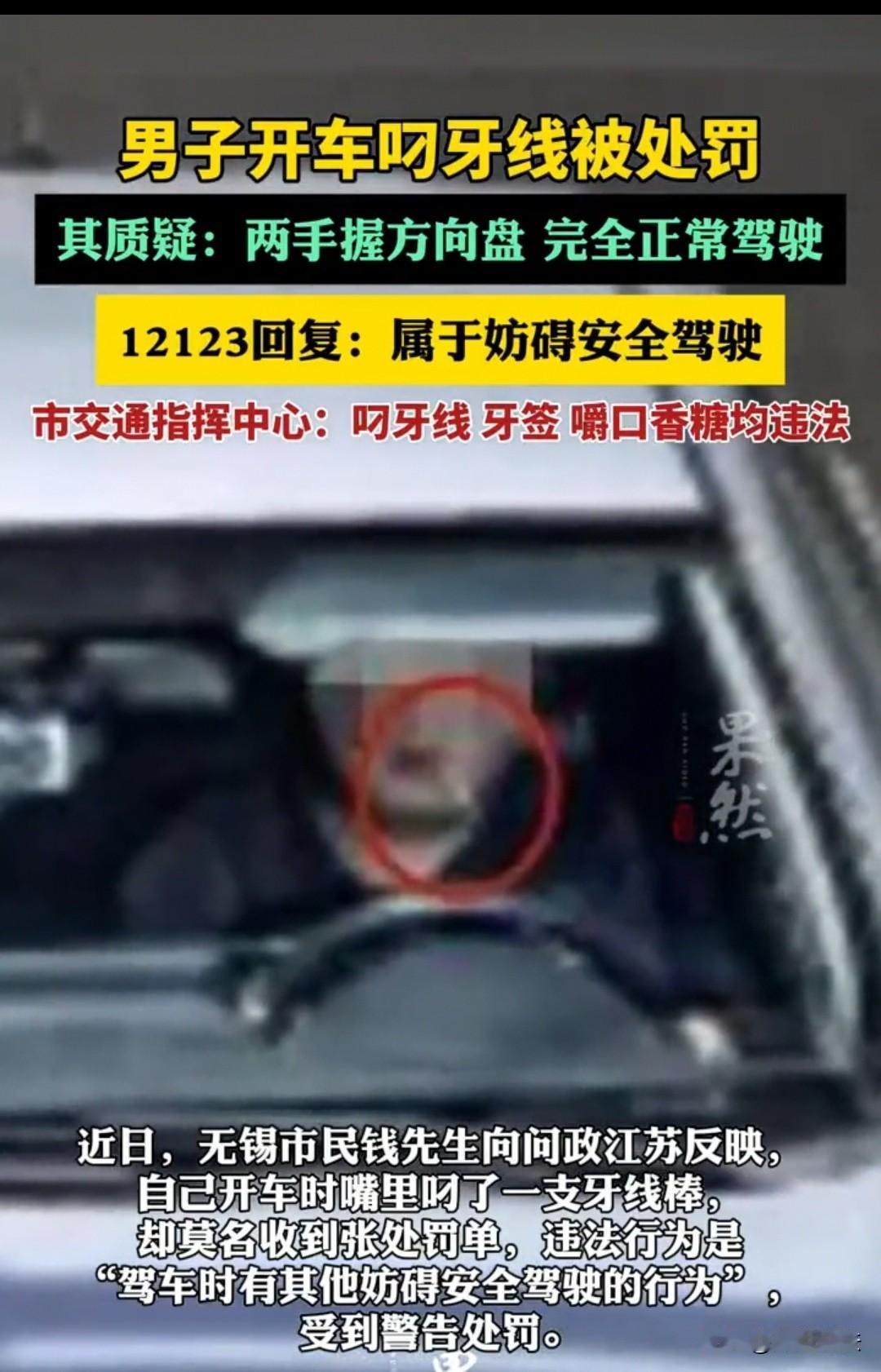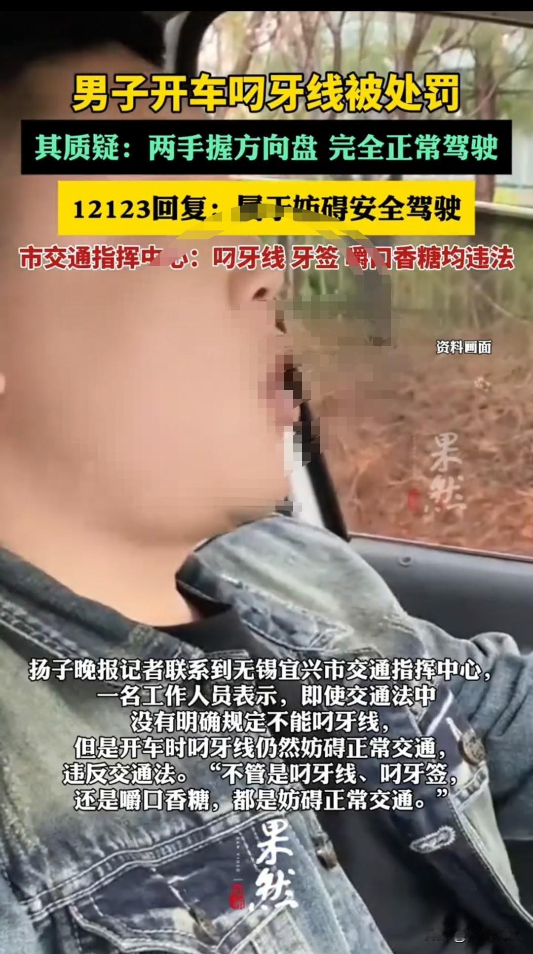 无锡,男子叼了一根牙线棒,被抓拍后受到警告处罚,他很是不解。进行反馈后,相关部门回应:叼牙线棒会影响注意力,属于妨碍安全驾驶的行为,就连吃东西、嚼口香糖也是如此,拍到后同样会给予警告处罚。不过大家在想,那打喷嚏流鼻涕时,用纸巾擦拭会不会同样被处罚呢? 钱先生十分困惑,自己怎么就莫名其妙被警告处罚了?看到处罚的图片,他觉得特别好笑,当时就只叼了一根牙线棒,居然就被处罚了。 “如果照这样下去,以后谁还敢开车呀?”他无奈地说,当时自己双手紧握方向盘,目光专注地注视着前方,一点都没有分心,这样也要被处罚吗? 他实在不明白处罚的道理和缘由在哪里。 “要是自己叼一支烟,有可能是分心、不合规,处罚我毫无怨言。” 但自己叼的是一根牙线,这和违规根本扯不上半毛钱关系。于是,他直接投诉到12123 APP,在上面反映情况。 结果工作人员回复称,他这种情况属于“驾驶时有其他妨碍安全驾驶的行为”。 钱先生还是不理解:“我哪里妨碍安全行驶了?我注意力那么集中,双手又紧握方向盘,你们哪里看出来我妨碍安全驾驶?” 对方没有明确说明,只让他自己领悟,没有给出更多回复。 不过,有记者联系了相关部门询问情况:“他不是在正常驾驶吗?为什么要进行处罚?” 对方进一步解释:嘴里咬着牙线棒,势必会分心。既然分心了,不管你手握没握方向盘、注意力专不专注,这个举动本身就会让人分心,属于妨碍公共交通安全。 并且,对方还补充说明:叼牙线棒、嚼口香糖、吃东西等,都属于同一类行为。 这时大家才明白,“有其他妨碍安全驾驶的行为”指的是这类看似没有明确规定,但隐性中会导致分心的行为,因此才会被警告处罚。 这种警告处罚,大致就是口头或书面警告,不会扣分也不会罚款,只是提醒驾驶员在驾驶时不要做与驾驶无关的任何事情,否则就会被警告。 当然,首次警告不罚钱,但如果屡教不改,肯定会面临罚款、记分,所以钱先生才执意要问个理由:“自己就叼了一个牙线棒,又没影响正常操作,为什么要给予警告处罚?” 现在网友们也不再纠结,反正知道这种情况属于妨碍安全驾驶的行为,以后肯定都会多加注意。 不过有人提出疑问:“这些行为可以主动杜绝,自己避免就行了。但关键是,如果中途打个喷嚏、流个鼻涕,在高速路上又不能随便停下来,必须用纸巾擦拭,这种情况会不会也被如此判定?” 一种是可以避免的行为,一种是无法避免的行为,该如何认定是否属于妨碍安全驾驶呢? 虽然看起来两种行为一种是主观故意,一种是客观突发,但实际上都是做出了与驾驶无关的动作,到底会如何判断? 一、叼牙线棒被认定为妨碍安全驾驶,第一次不会扣分和罚款。 《道路交通安全法》第九十条、《道路交通安全法实施条例》第六十二条第(三)项(驾驶机动车不得有“其他妨碍安全驾驶的行为”)。 首次查获通常处警告处罚(无罚款、不记分);若多次违反,可处20元以上200元以下罚款,部分地区会依据《道路交通安全违法行为记分管理办法》记1分。 二、打喷嚏时用纸巾擦拭与叼牙线棒行为雷同,但不会被同等处罚。 《道路交通安全法实施条例》第六十二条的“妨碍安全驾驶”,核心判定标准是“行为是否存在主观故意且可避免”。 叼牙线棒是主动、可避免的行为,属于妨碍安全驾驶,会被处罚;而打喷嚏用纸巾擦拭是突发、无法避免的应急行为,执法中通常会结合实际场景(如是否短暂、是否影响安全操作)酌情认定,一般不会按妨碍安全驾驶处罚。 对于此事,大家如何看待? 素材来源于红星新闻,2025年11月12日