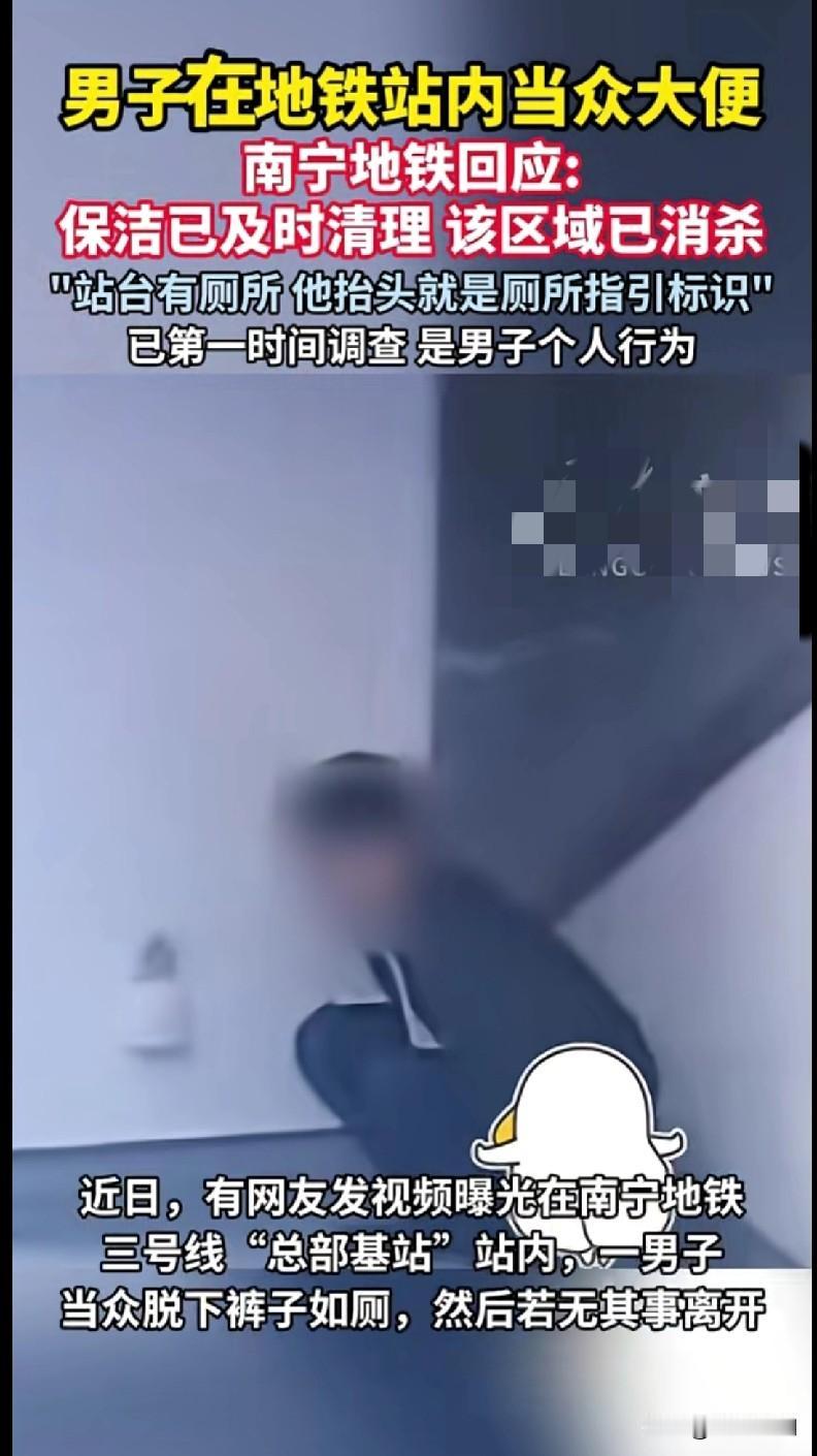 南宁地铁这事儿真给我看懵了——一男子在3号线总部基站内,当众脱裤子大便,完事儿还跟没事人似的走了! 关键地铁站台抬头就是厕所指引啊!保洁赶紧清理消杀,但这画面想想都膈应人。地铁回应说这是男子个人行为,已经在调查了。 不是,公共场合干这事儿也太没边界感了吧?哪怕真有急事儿,厕所就在旁边,忍两步能咋地?这波操作不仅毁了别人的通勤心情,自己的脸面也扔得干干净净。 希望后续能有个说法,公共秩序得靠所有人守着啊。要不要我帮你整理一份“公共场合文明行为提醒”方便分享?